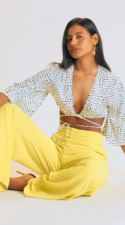 Blusa Zinco Decote V Manga Curta Com Amarração Off White