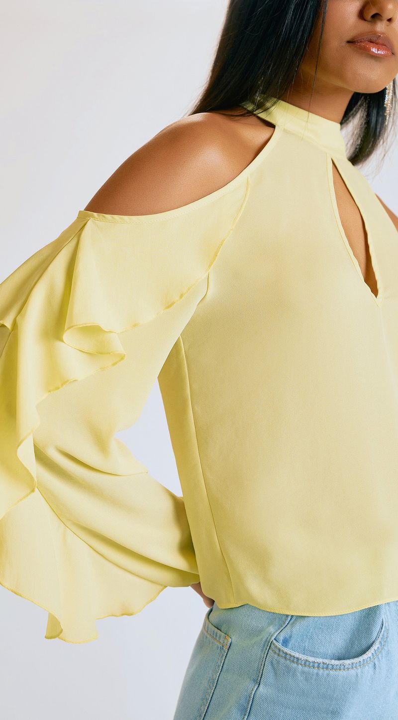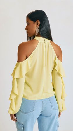 Blusa Zinco Gola Alta Manga Longa Com Babado Verde Claro