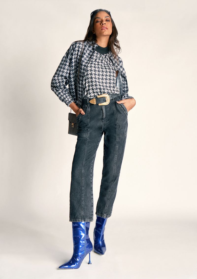 Calca Zinco Reta Cós Alto Bolso Faca Preto