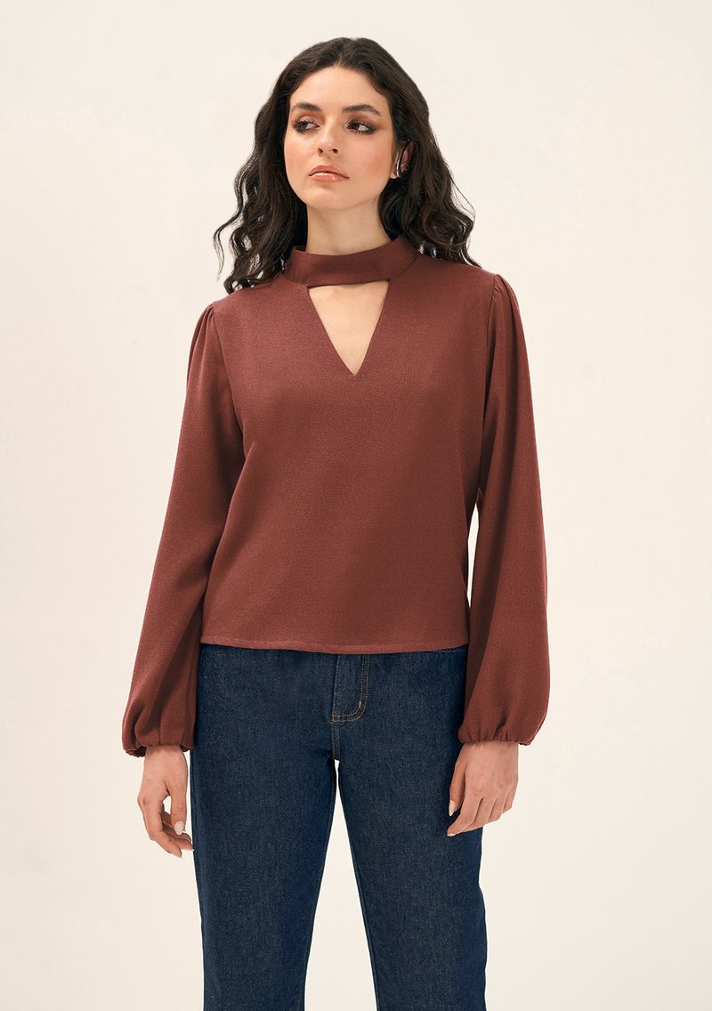 Blusa Zinco Gola Redonda Manga Longa Detalhe Decote Laranja