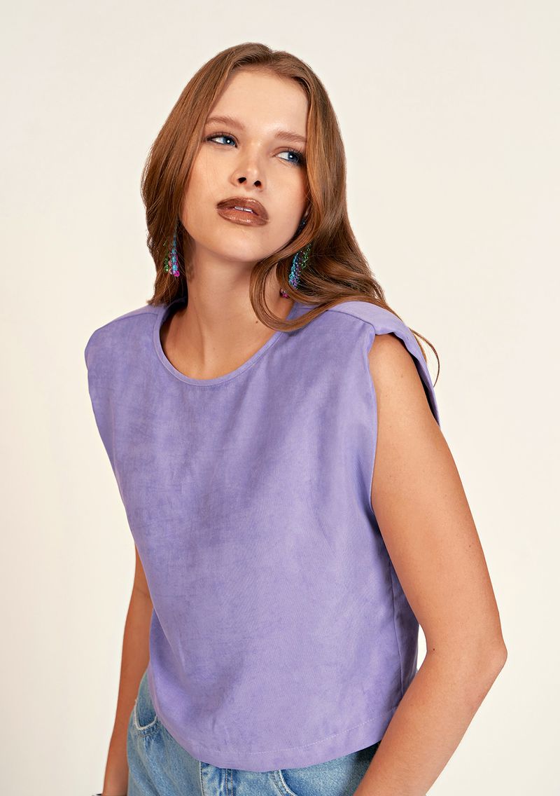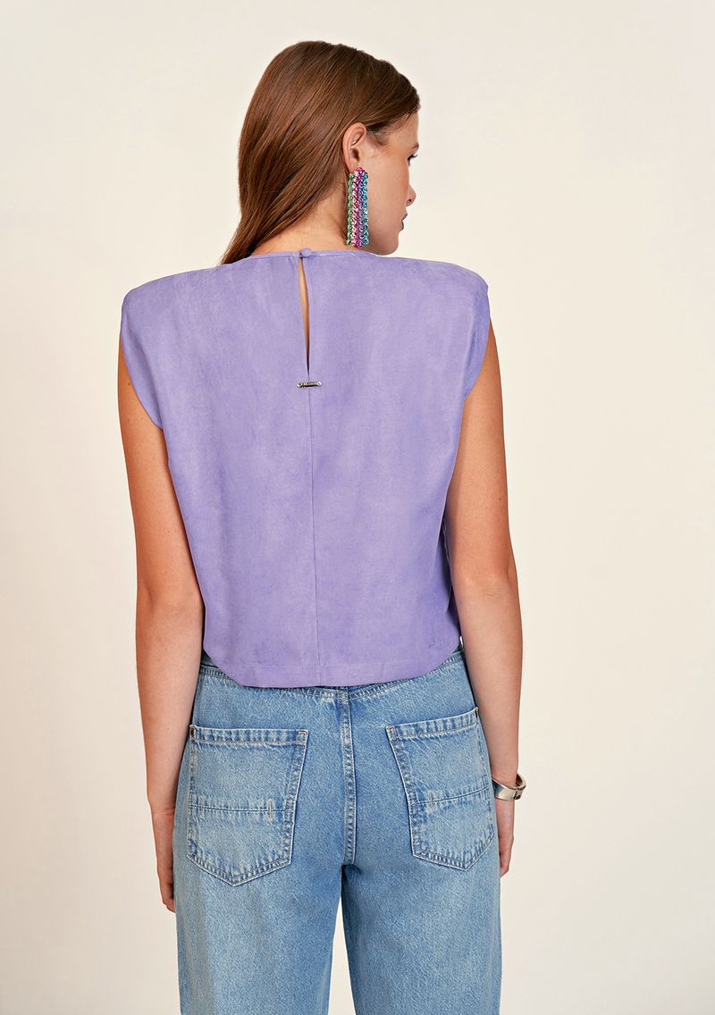 Blusa Zinco Decote Redondo Sem Manga Abertura Costas Lilas
