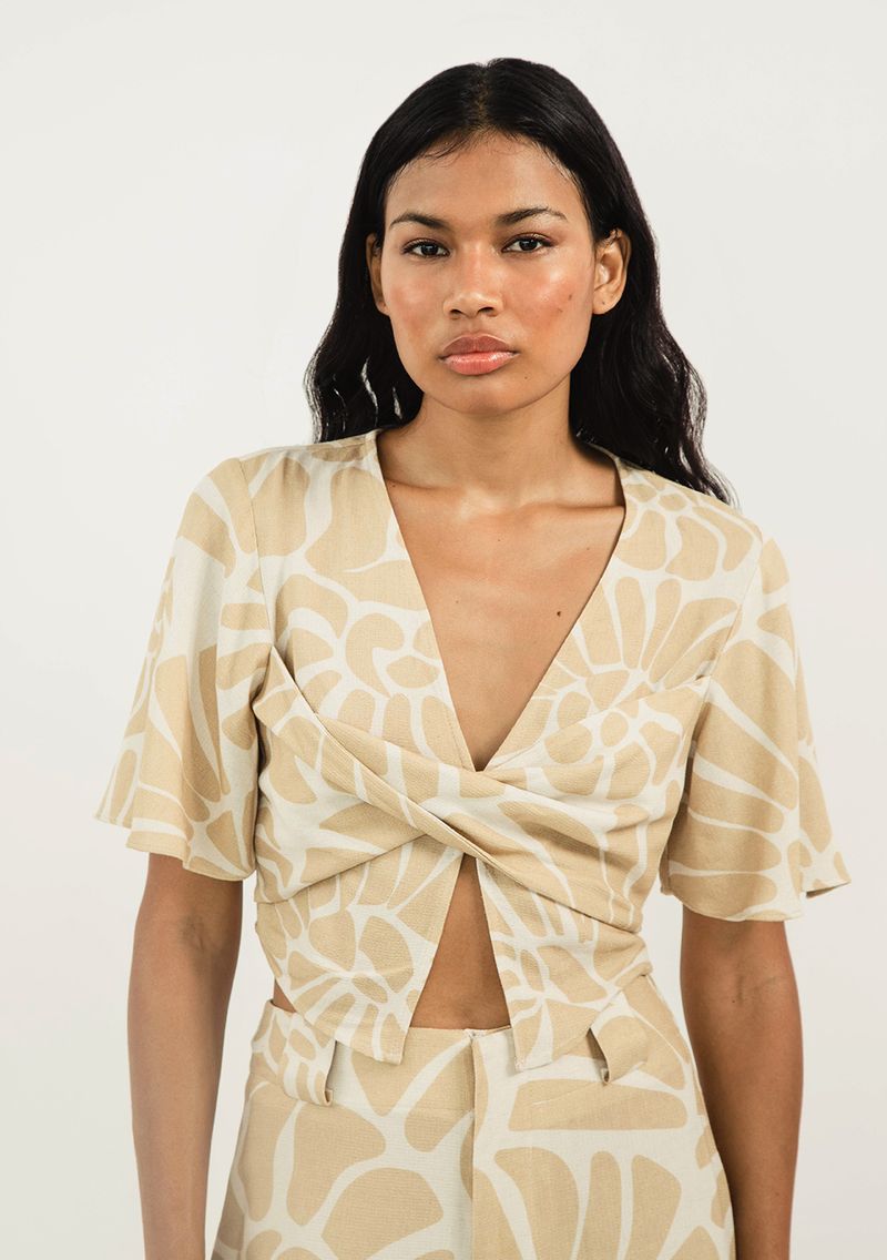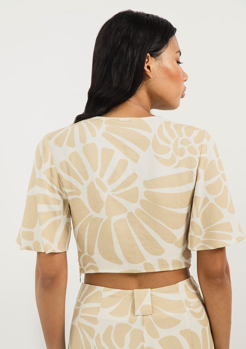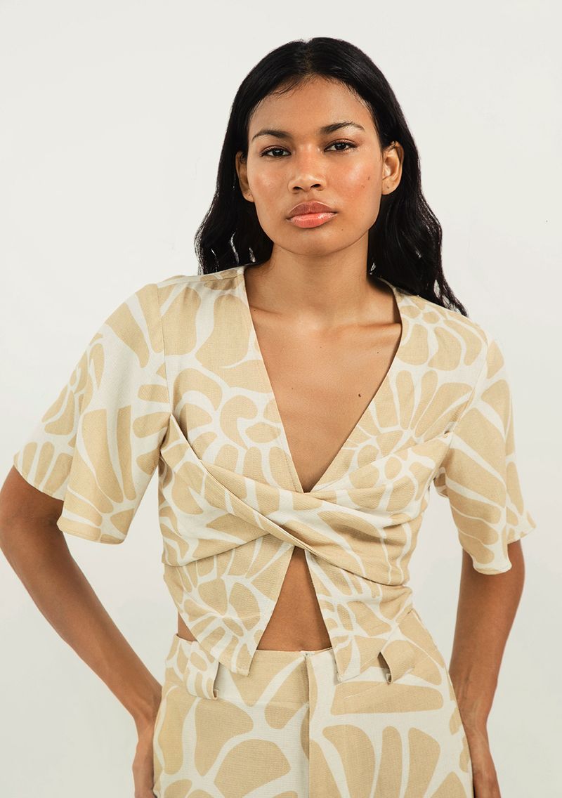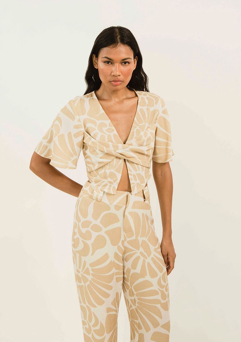Blusa Zinco Decote V Manga Curta Detalhe Torção Cru