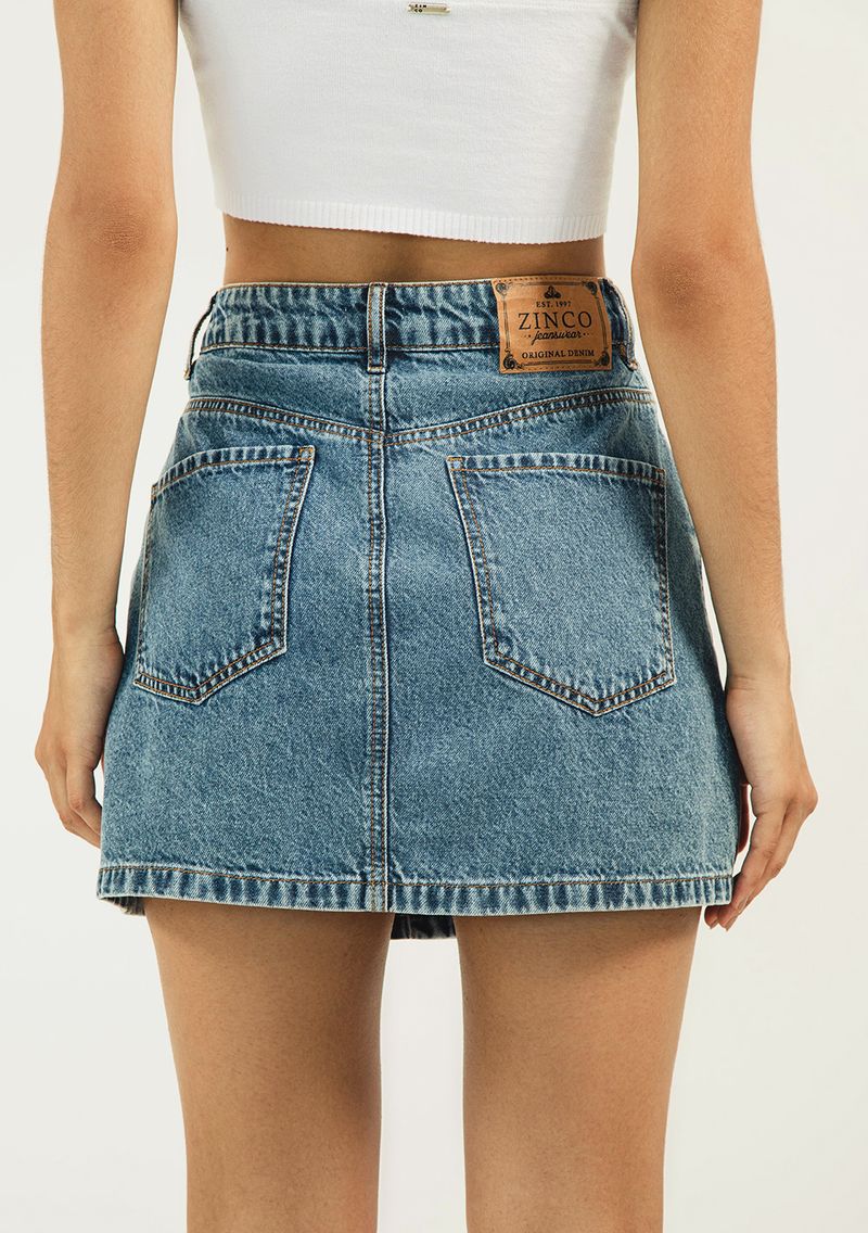 Saia Zinco Curta Five Pockets Composê Tecido Jeans