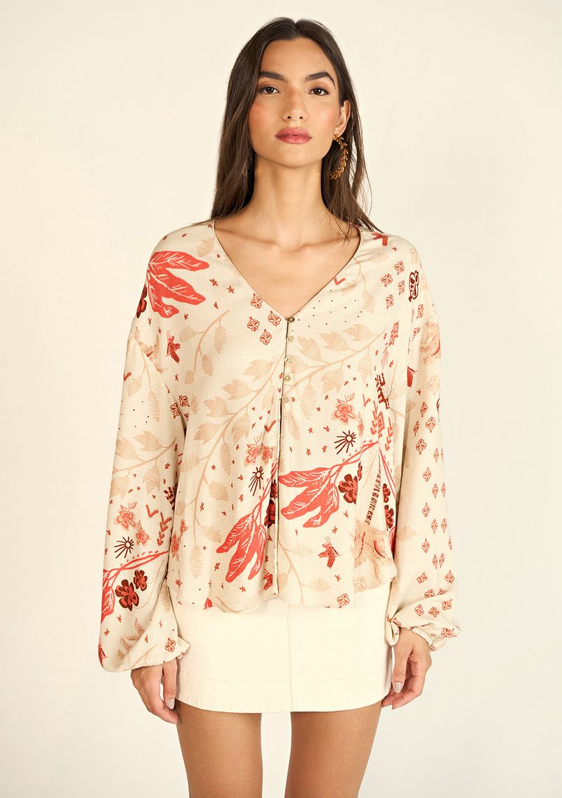 Blusa Zinco Decote V Manga Longa Com Botão Cru