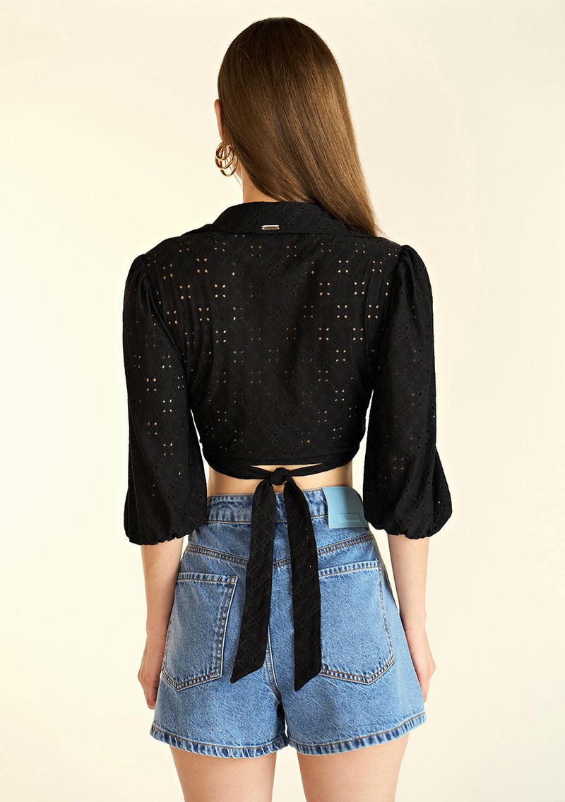Blusa Zinco Decote V Manga Bufante Com Elástico Preto