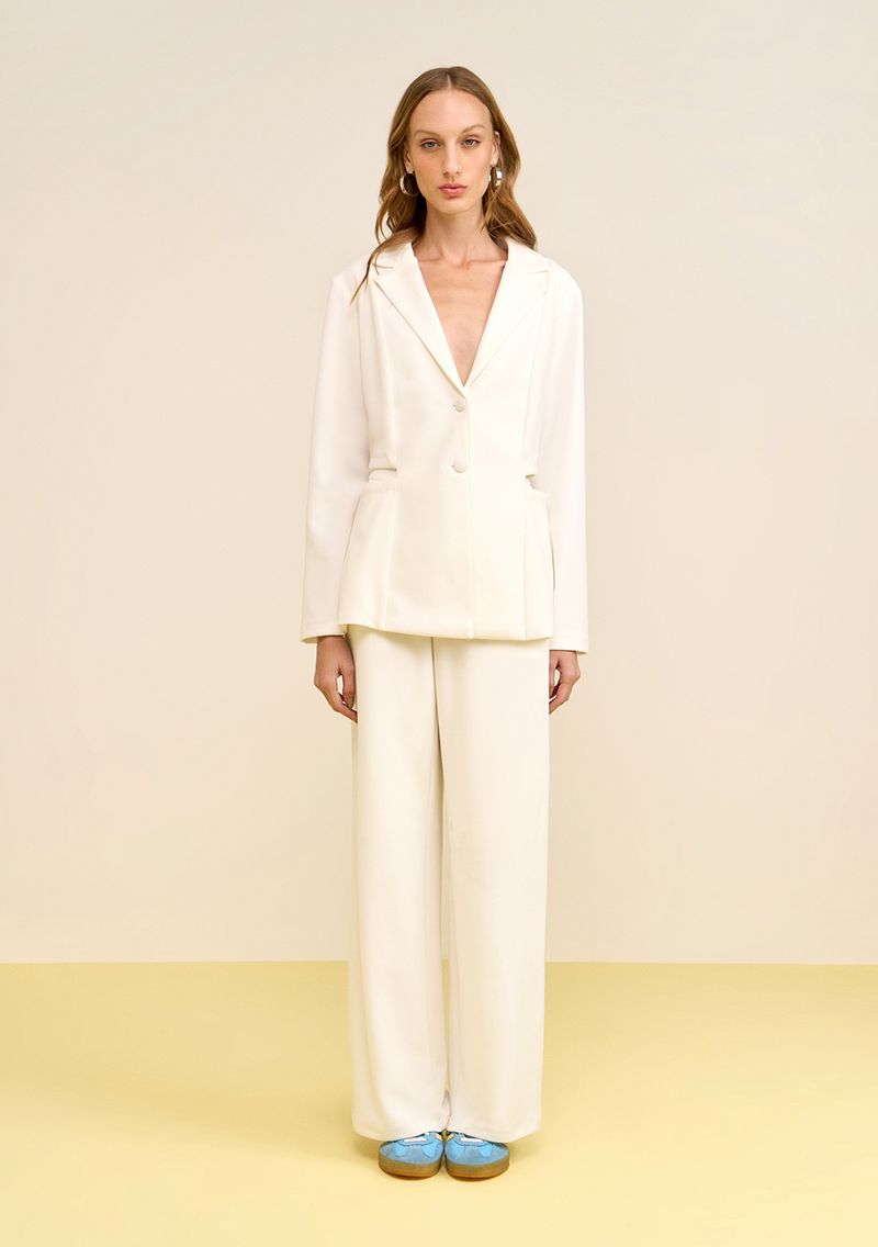 Descubra o Blazer Zinco Solto Manga Longa Alongado Off White, a peça essencial para elevar seu estilo nesta temporada. Com um design que equilibra sofisticação e liberdade, ele é perfeito para transitar entre o escritório e eventos sociais. Sua composição em poliéster e elastano proporciona conforto e um caimento impecável. Combine com jeans skinny e uma blusa de seda para um look casual chique, ou com uma saia lápis e salto alto para ocasiões mais formais. Parte da coleção 'O Solstício de Inverno', este blazer reflete a essência vibrante e autêntica da mulher Zinco. Sinta-se confiante e estilosa em qualquer momento.