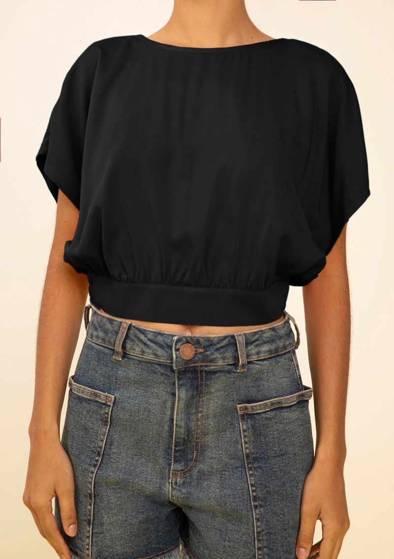 Blusa Zinco Ajustada Decote Careca Manga Curta Cropped Preto