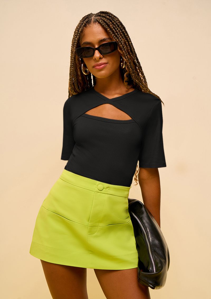 Blusa Zinco Ajustada Decote Careca Manga Curta Padrão Preto