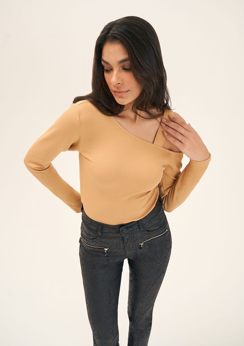 OUTLETRoupasBlusasBlusa Zinco Decote Assimétrico Manga Longa Básica Bege