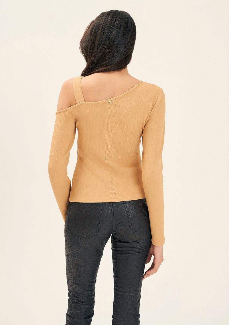 Blusa Zinco Decote Assimétrico Manga Longa Básica Bege