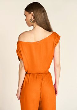 Blusa Zinco Decote Assimétrico Sem Manga Com Amarração Laranja