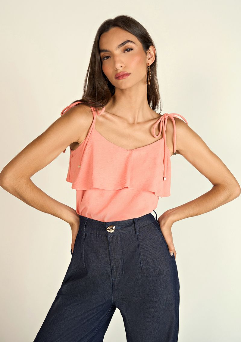 Blusa Zinco Decote Redondo Alça Com Amarração Laranja