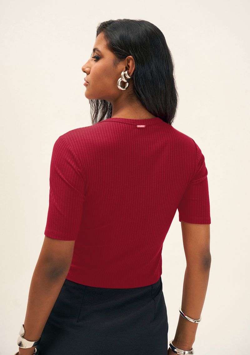 Blusa Zinco Decote Redondo Manga Curta Abertura Frente Bordo