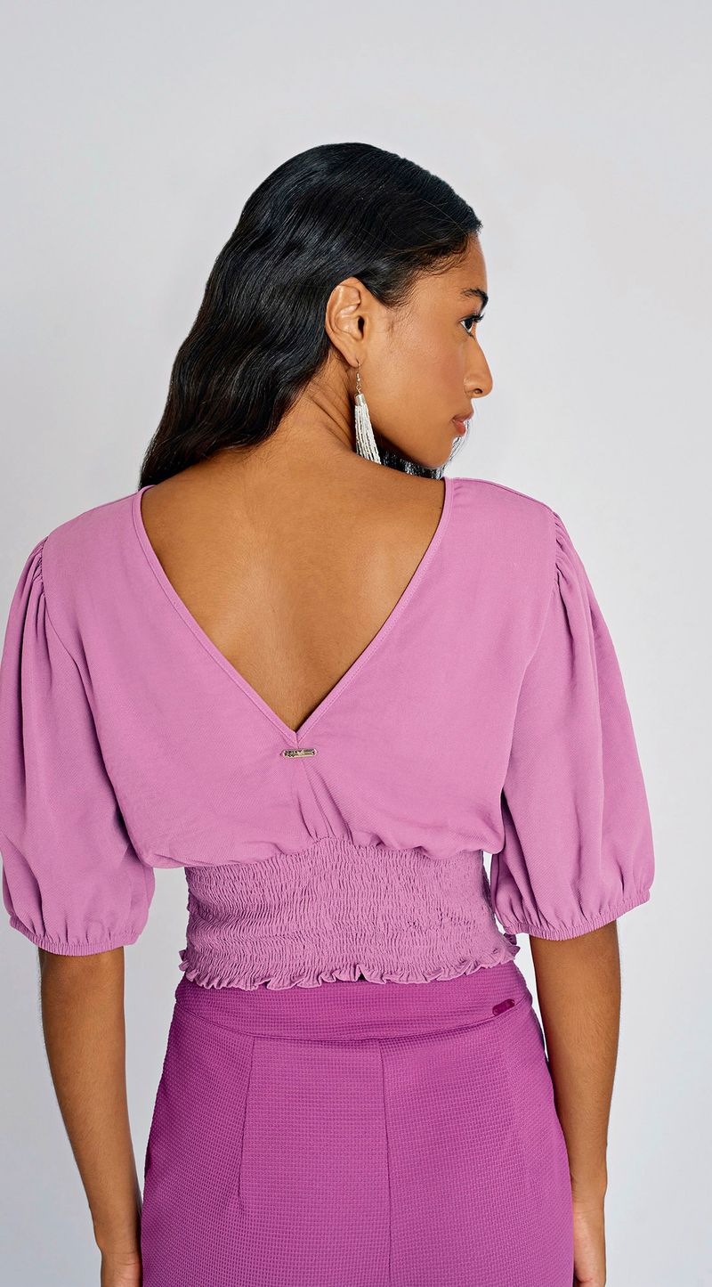 Blusa Zinco Decote Redondo Manga Curta Com Lastex Roxo