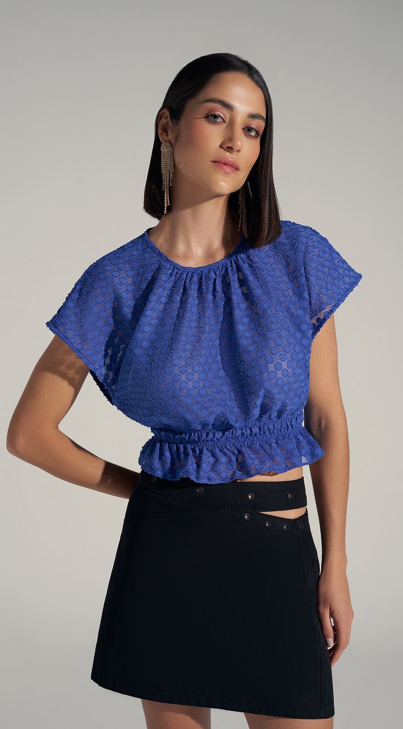 Blusa Zinco Decote Redondo Manga Curta Detalhe Elástico Azul