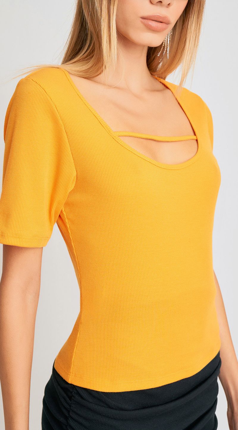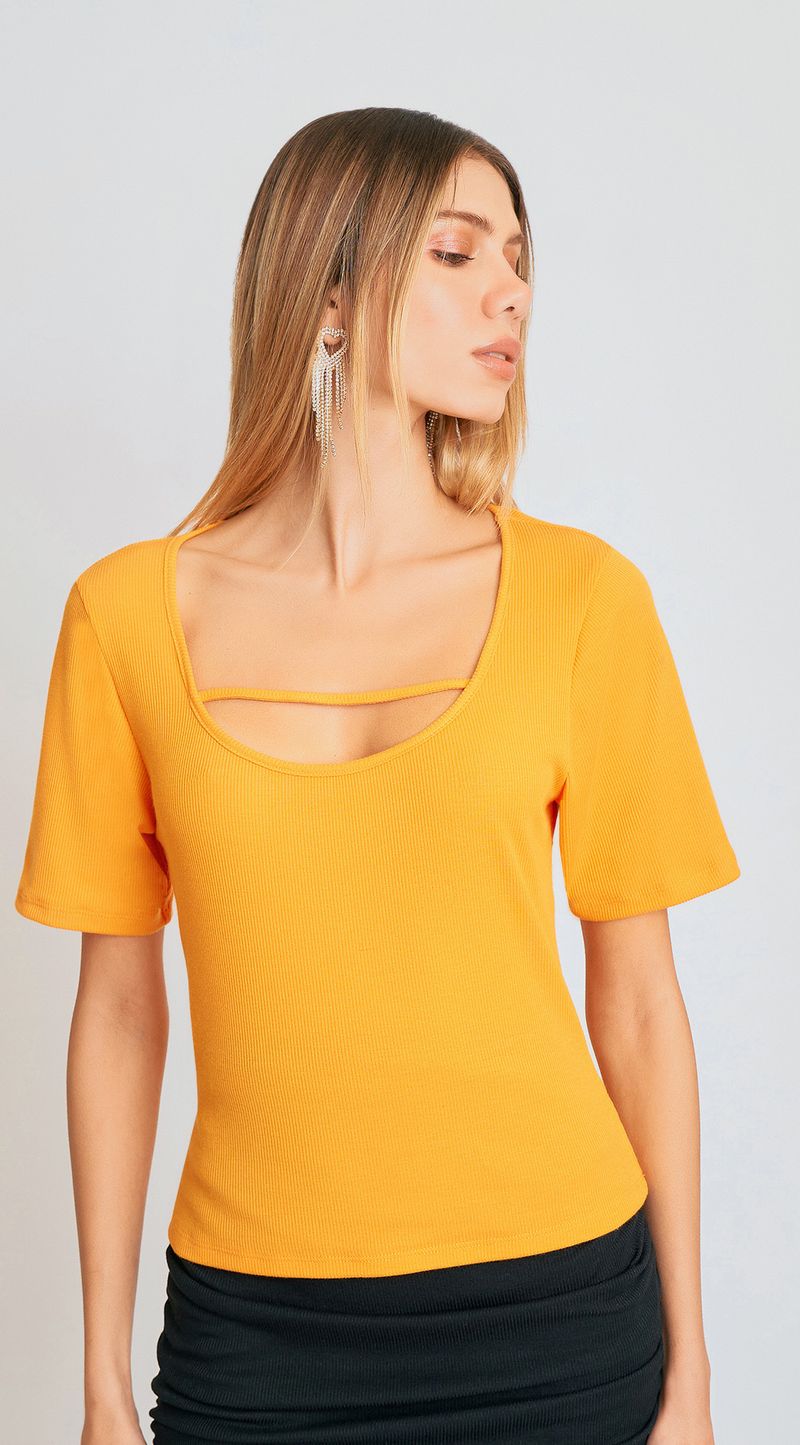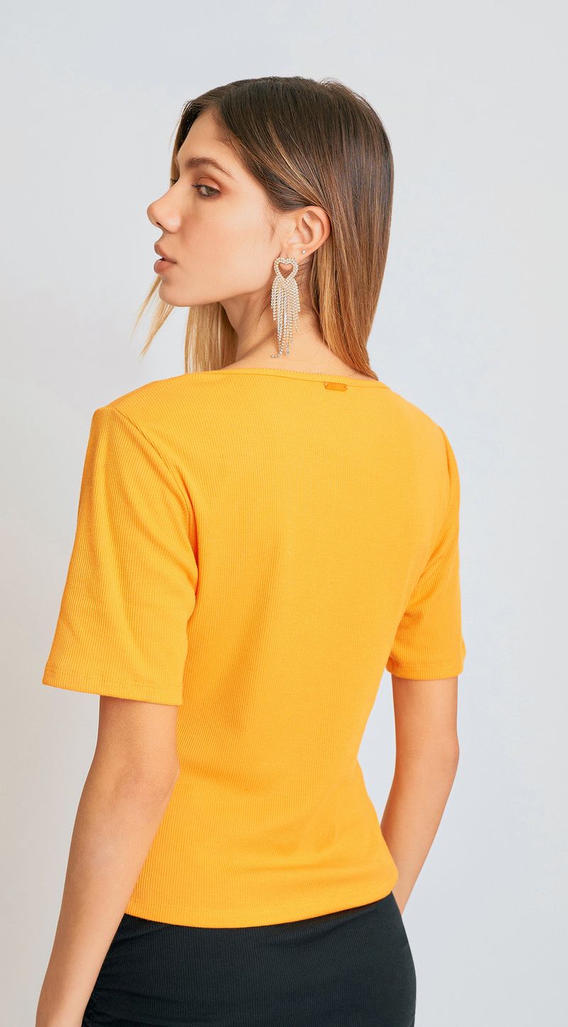 OUTLETRoupasBlusasBlusa Zinco Decote Redondo Manga Curta Detalhe Viés Laranja