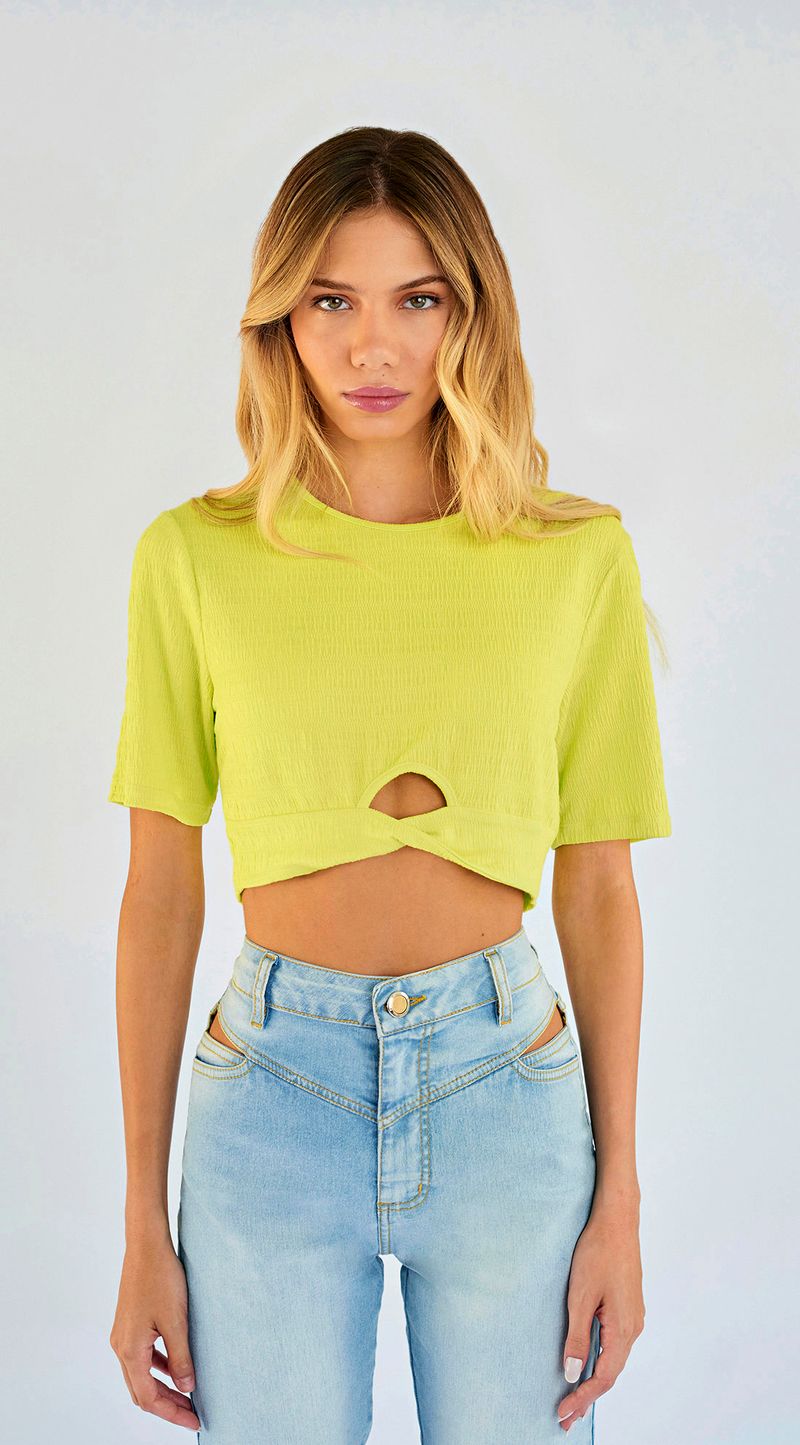 Blusa Zinco Decote Redondo Manga Curta Torção Frente Verde Claro