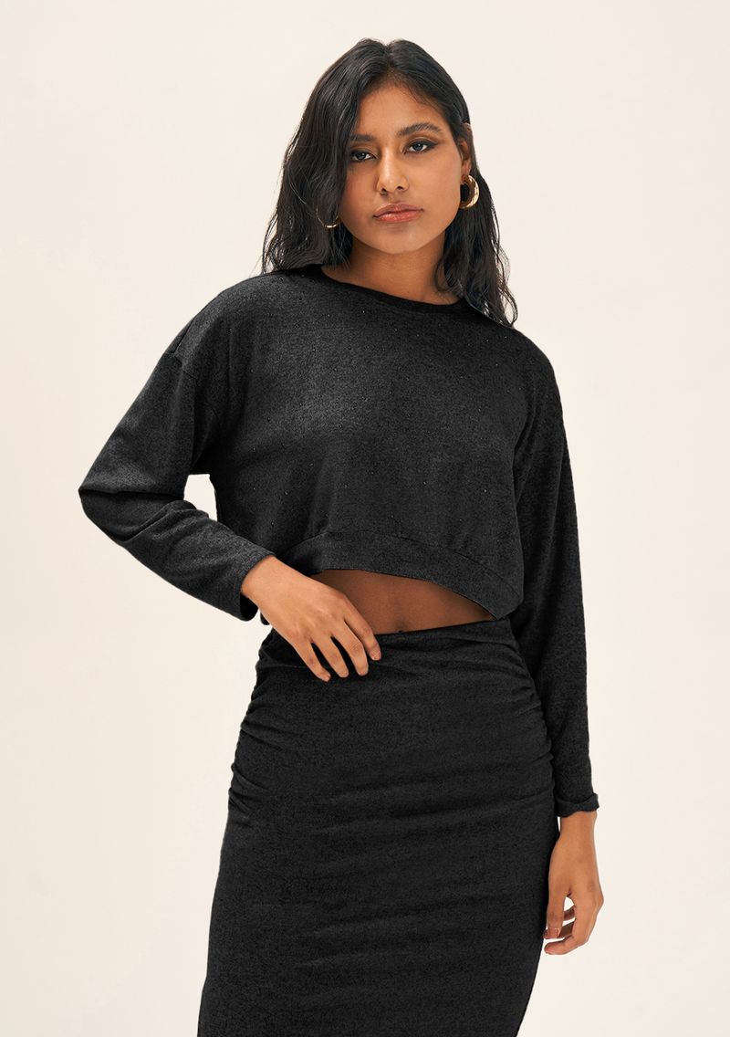 Blusa Zinco Decote Redondo Manga Longa Com Termocolante Preto