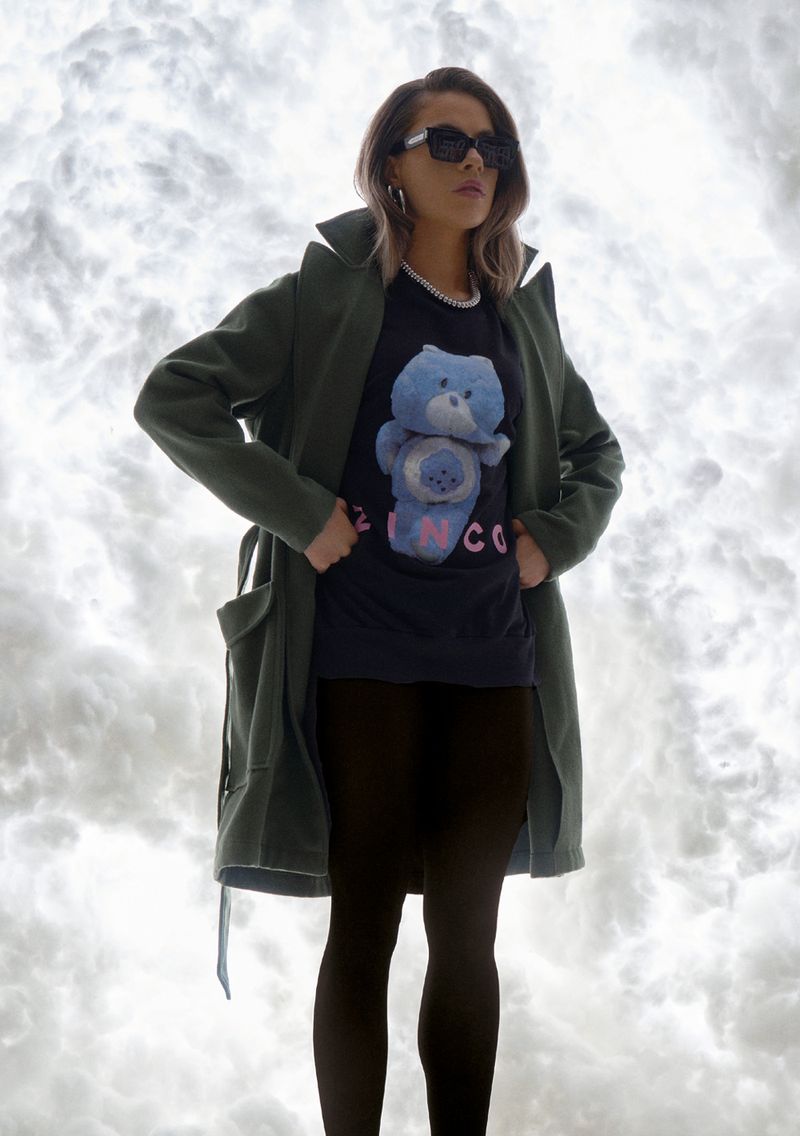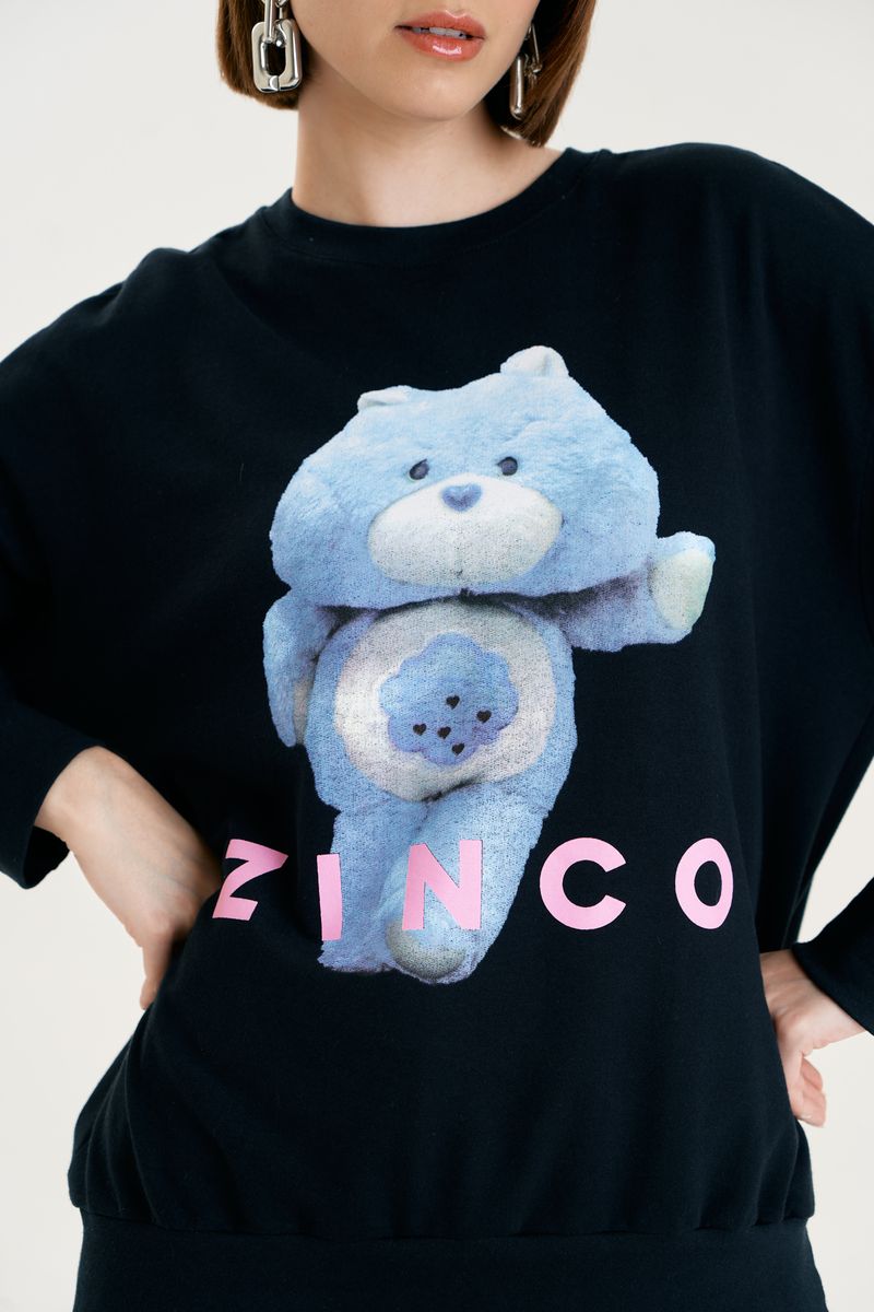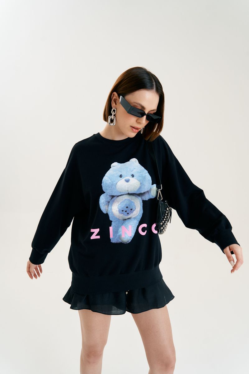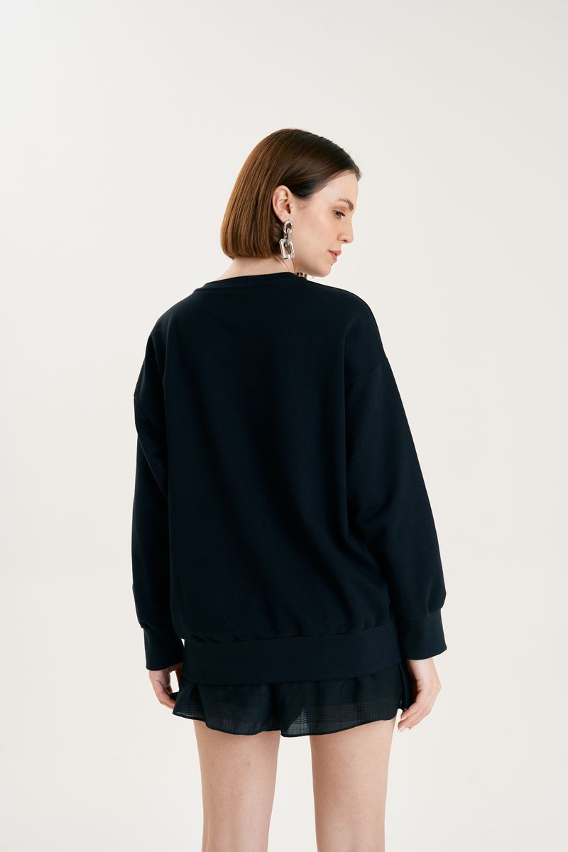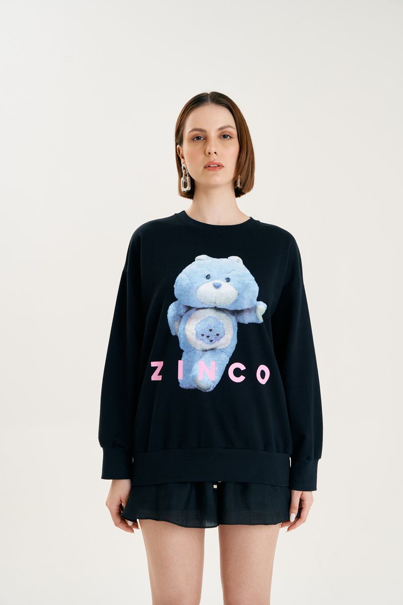 Blusa Zinco Decote Redondo Manga Longa Estampada Preto