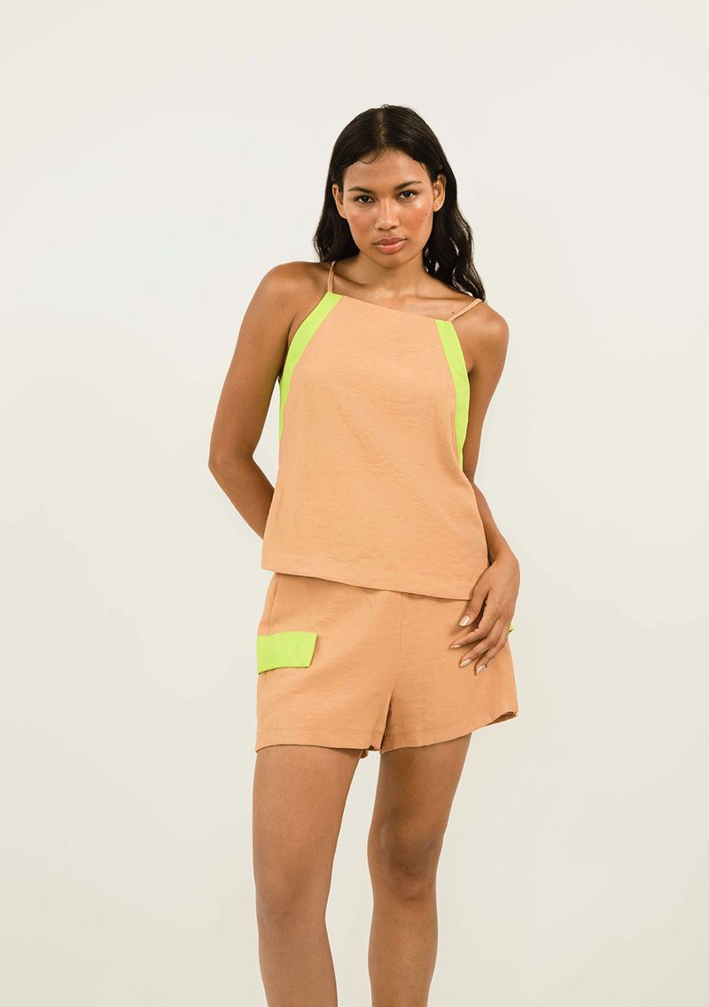 OUTLETRoupasBlusasBlusa Zinco Decote Reto Cava Francesa Bicolor Marrom