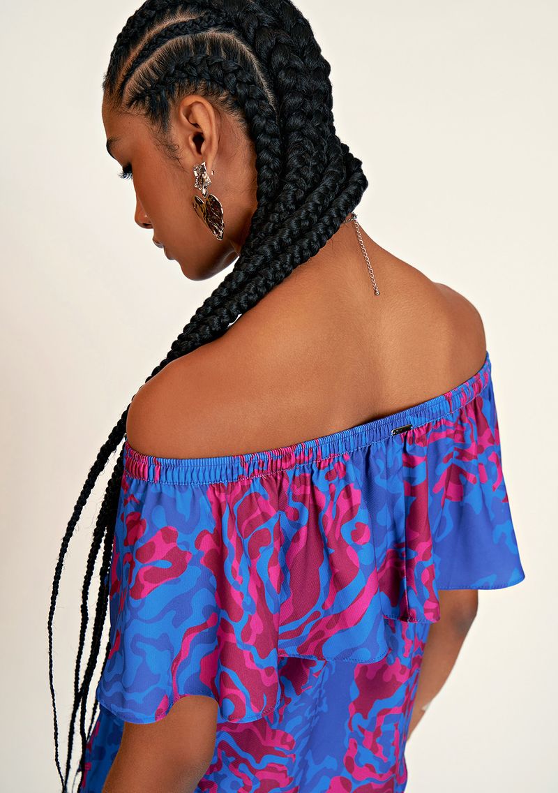 OUTLETRoupasBlusasBlusa Zinco Decote Reto Cavada Com Babado Bordo