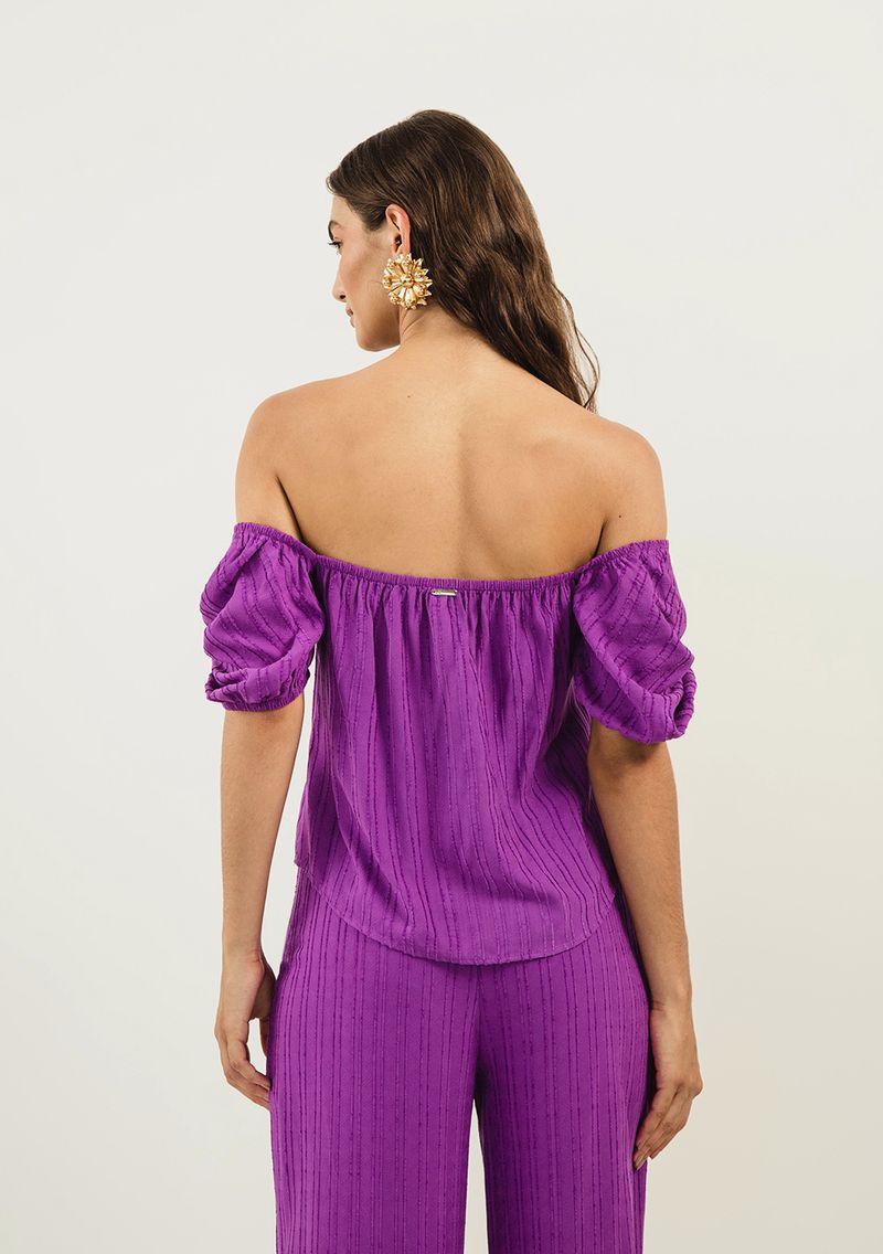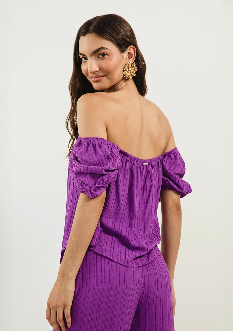 Blusa Zinco Decote Reto Manga Curta Com Elástico Roxo