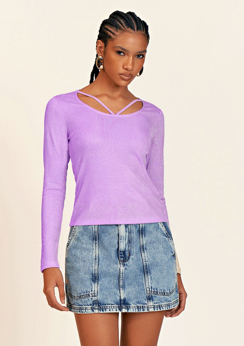 Blusa Zinco Decote U Manga Longa Detalhe Viés Lilas