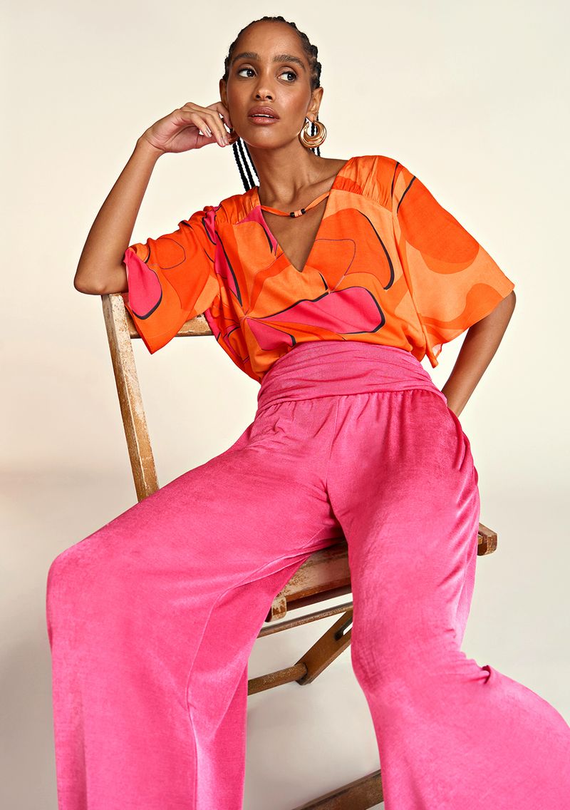 Blusa Zinco Decote V Manga Ampla Detalhe Decote Laranja
