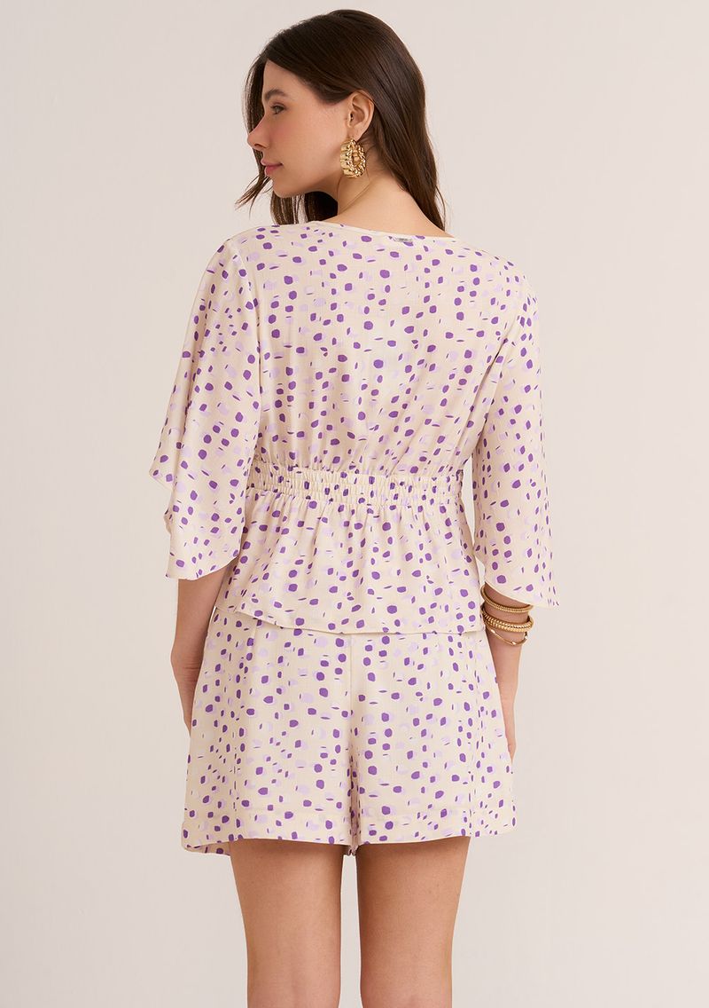 Blusa Zinco Decote V Manga Curta Detalhe Elástico Cru