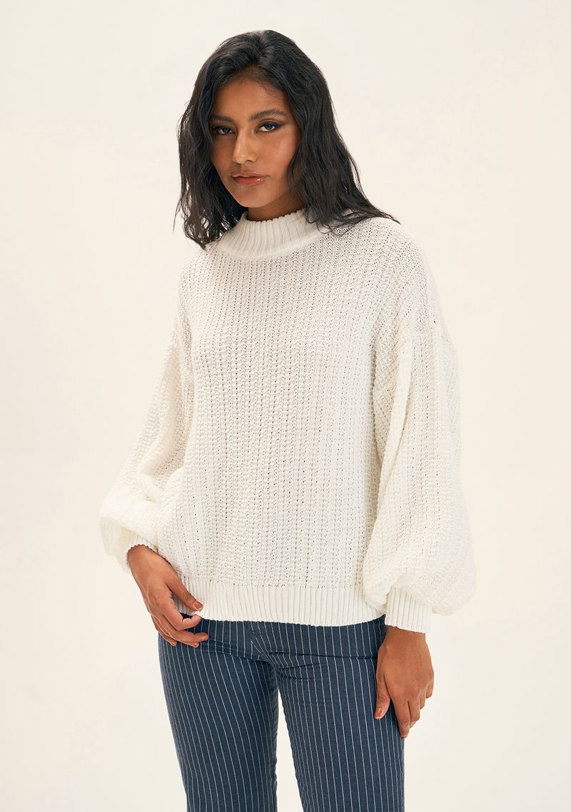 Blusa Zinco Gola Alta Manga Longa Tricôt Off White