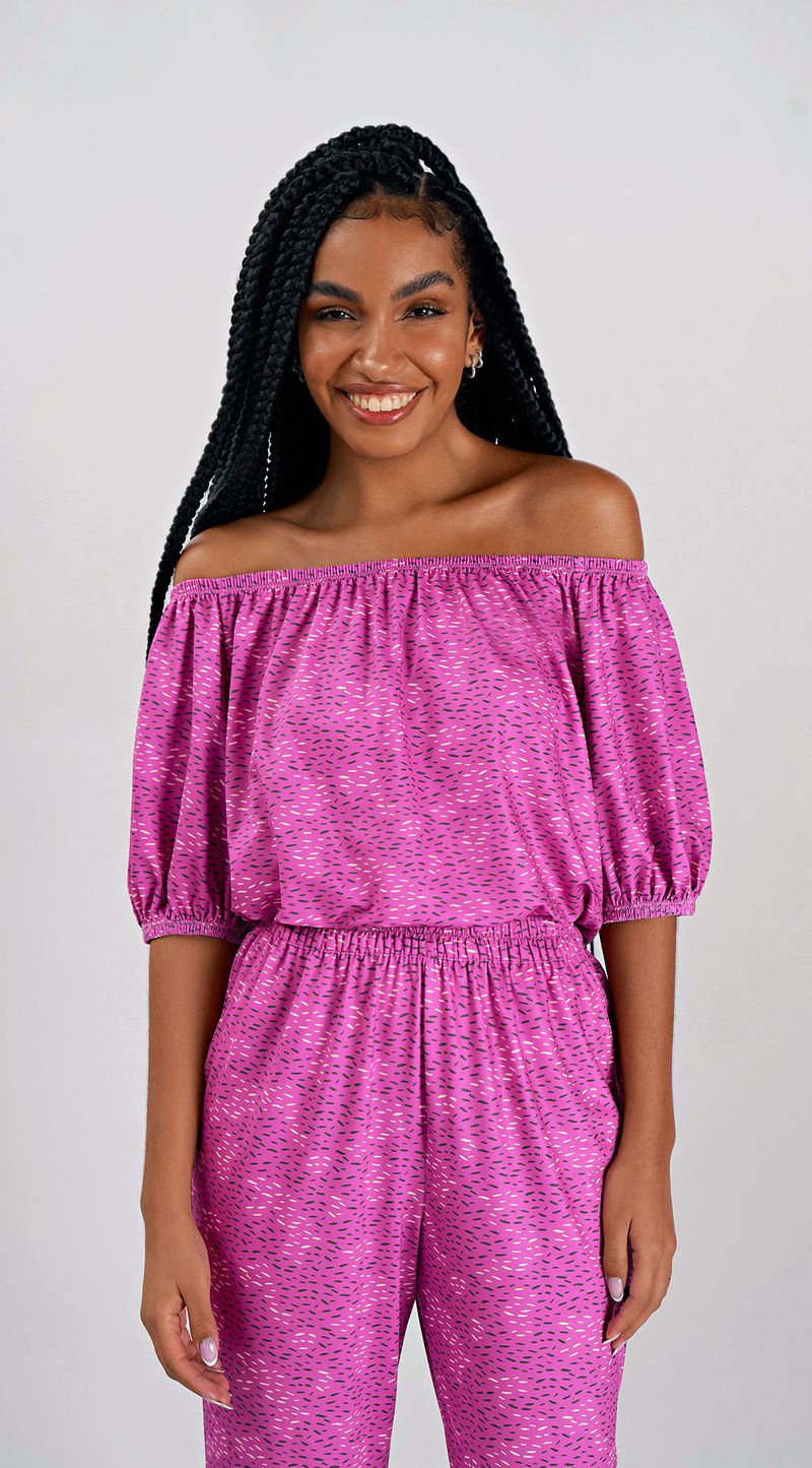 Blusa Zinco Ombro A Ombro Manga 3/4 Detalhe Elástico Rosa