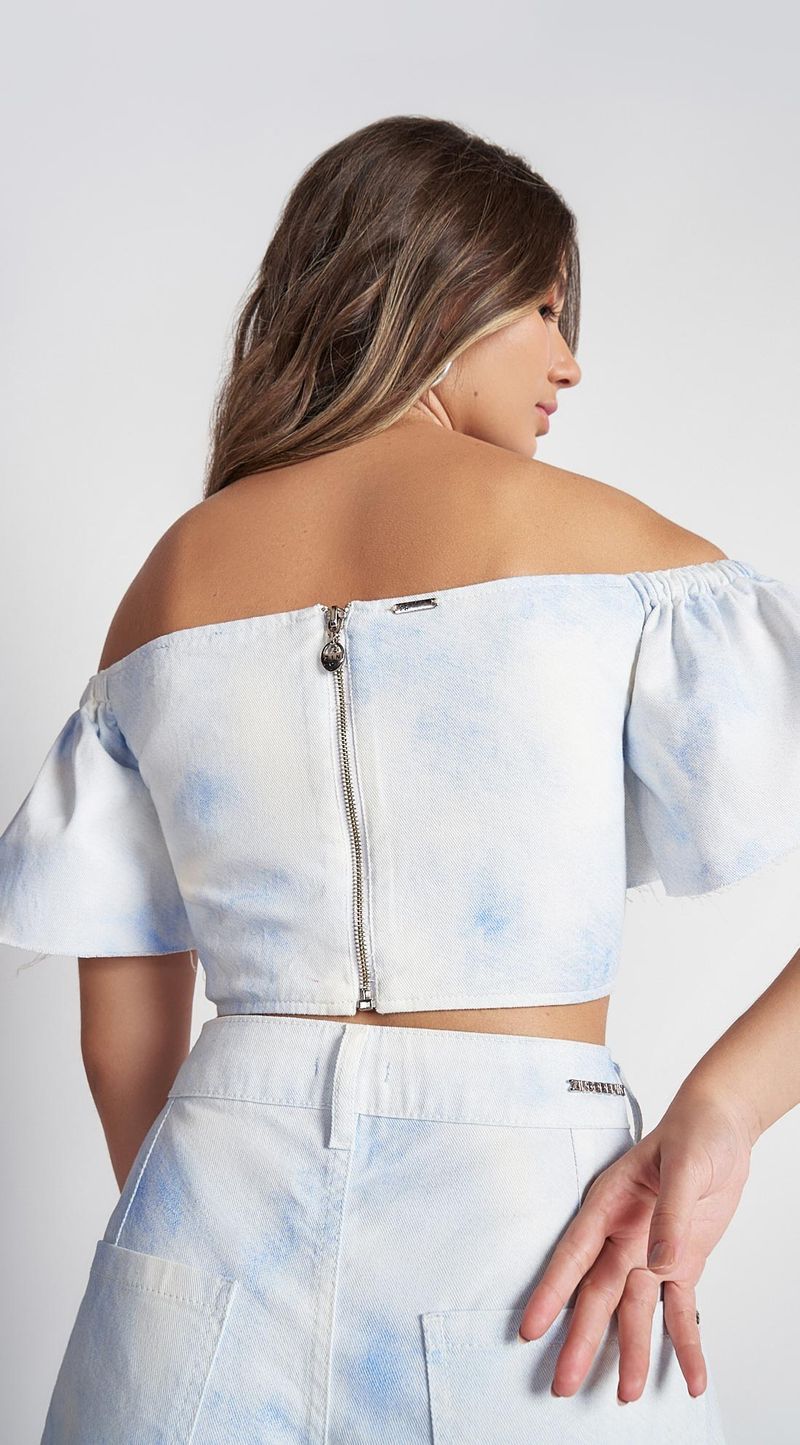 Blusa Zinco Ombro A Ombro Manga Curta Barra Arredondada Azul