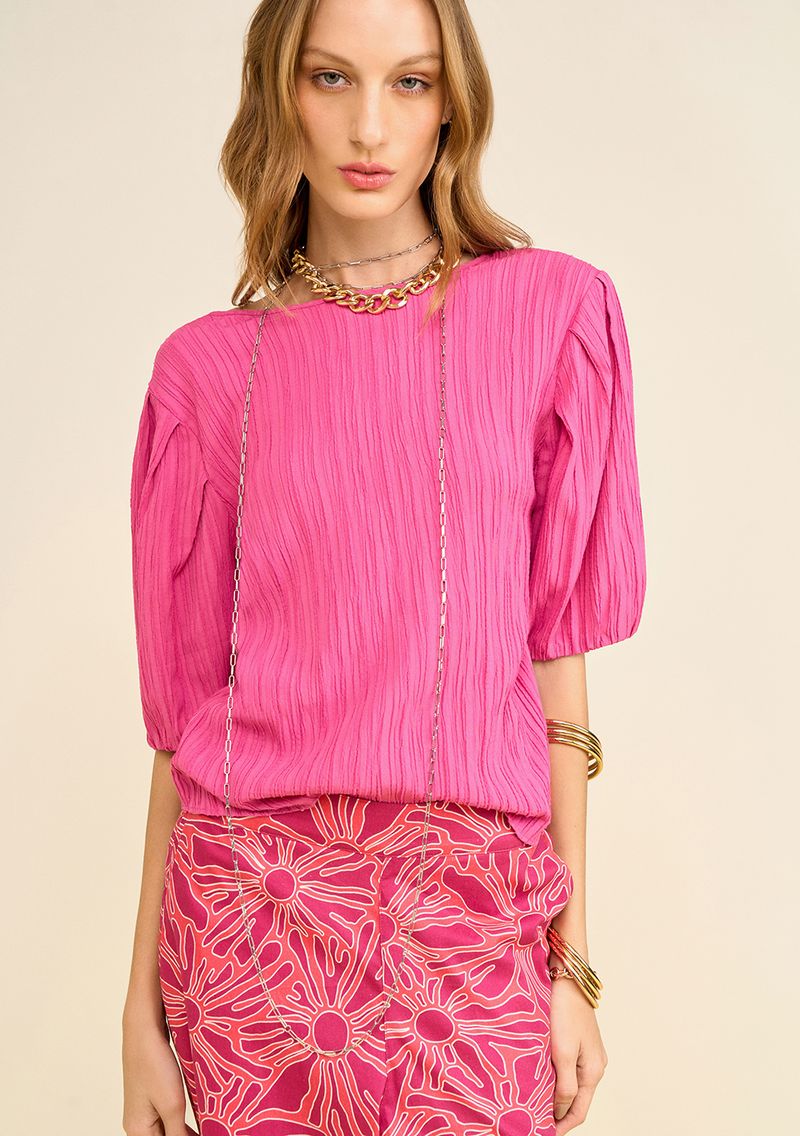 Explore a essência vibrante e descomplicada da Blusa Zinco Solta Decote Careca Manga 3 Quartos em um padrão rosa irresistível. Parte da coleção 'Solstício de Verão', esta peça é a escolha perfeita para expressar sua autenticidade em qualquer ocasião. Feita de crepe com 55% poliéster, 44% viscose e 1% elastano, ela abraça suavemente o corpo, garantindo conforto e estilo. Combine com jeans de cintura alta e acessórios minimalistas para um look casual chic, ou aposte em uma saia lápis e saltos para um jantar sofisticado. Deixe-se envolver pela energia e personalidade que só a Zinco oferece e transforme cada momento em uma declaração de estilo.