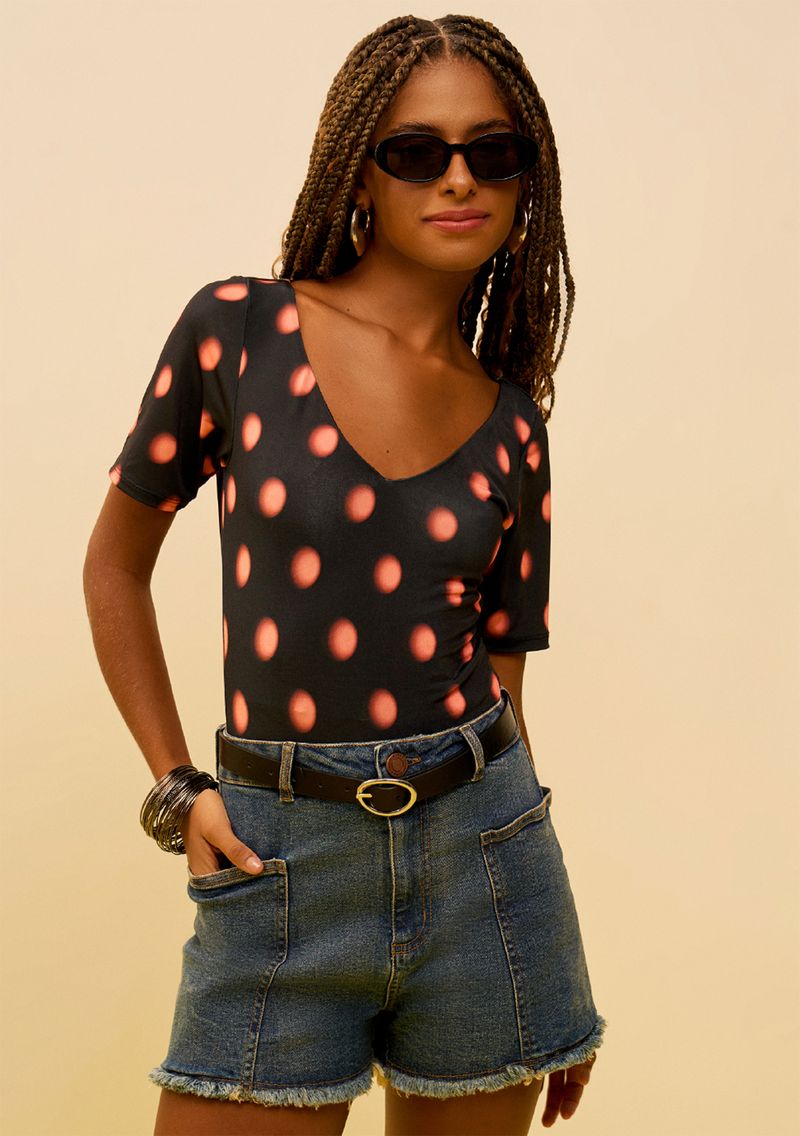 Body Zinco Decote Canoa Manga Curta Laranja