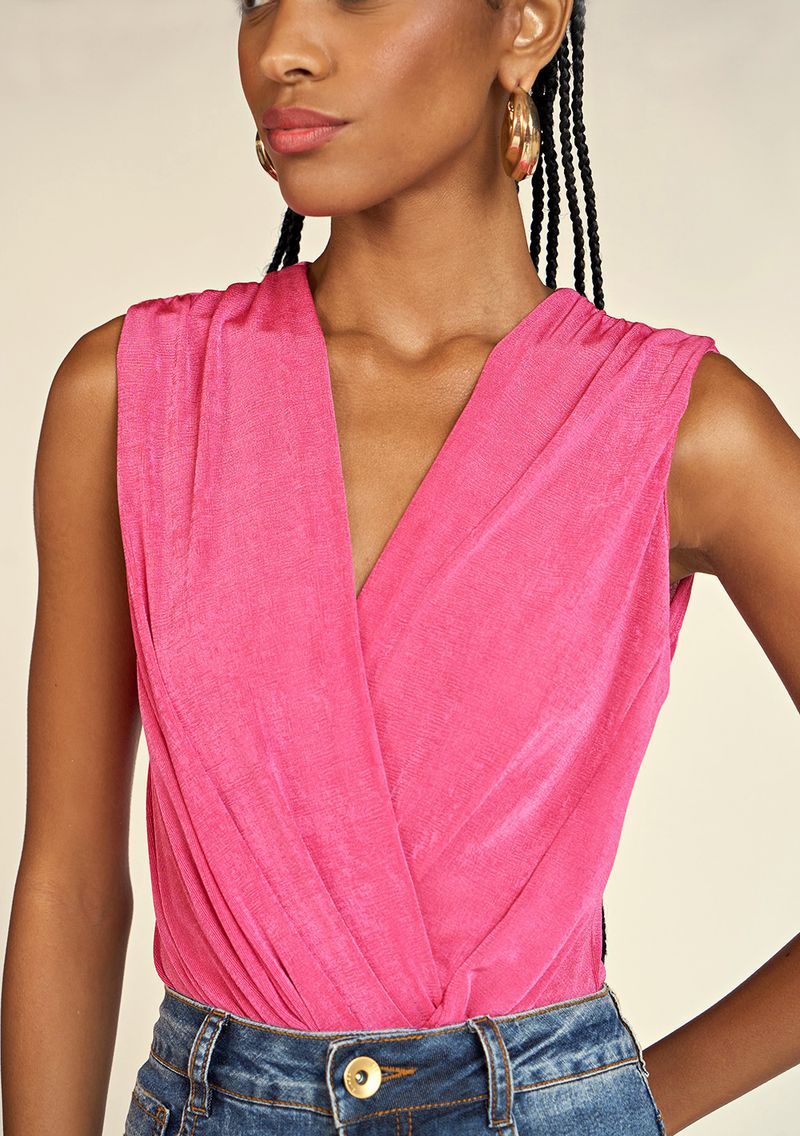 Body Zinco Decote V Cavado Com Pregas Rosa