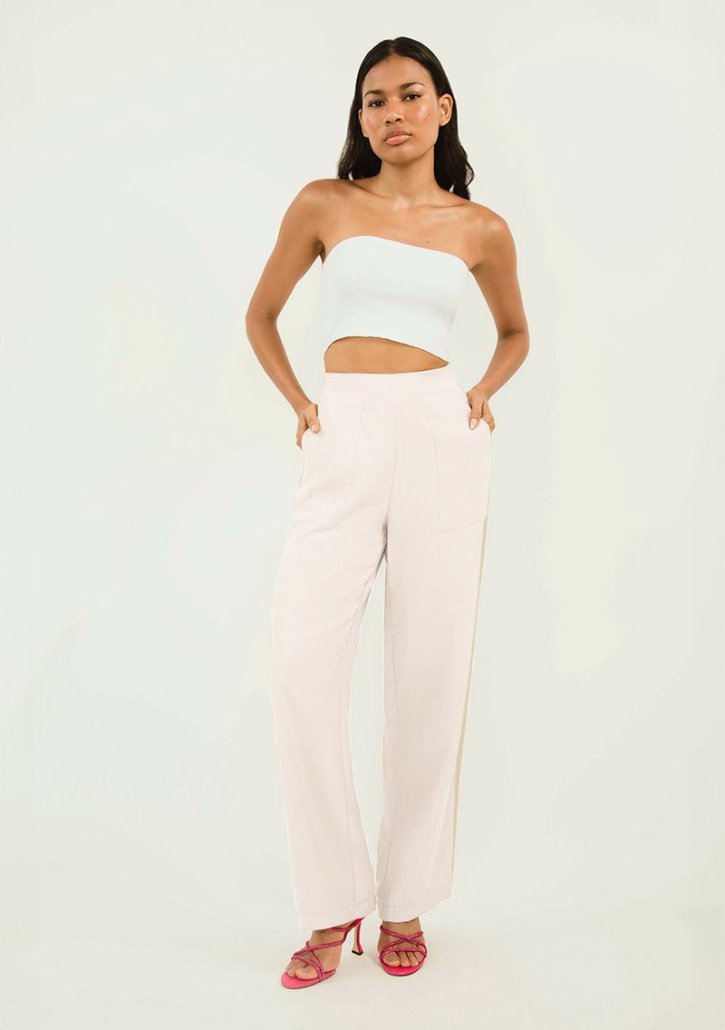 Calça Zinco Alfaiataria Cós Alto Bicolor Off White