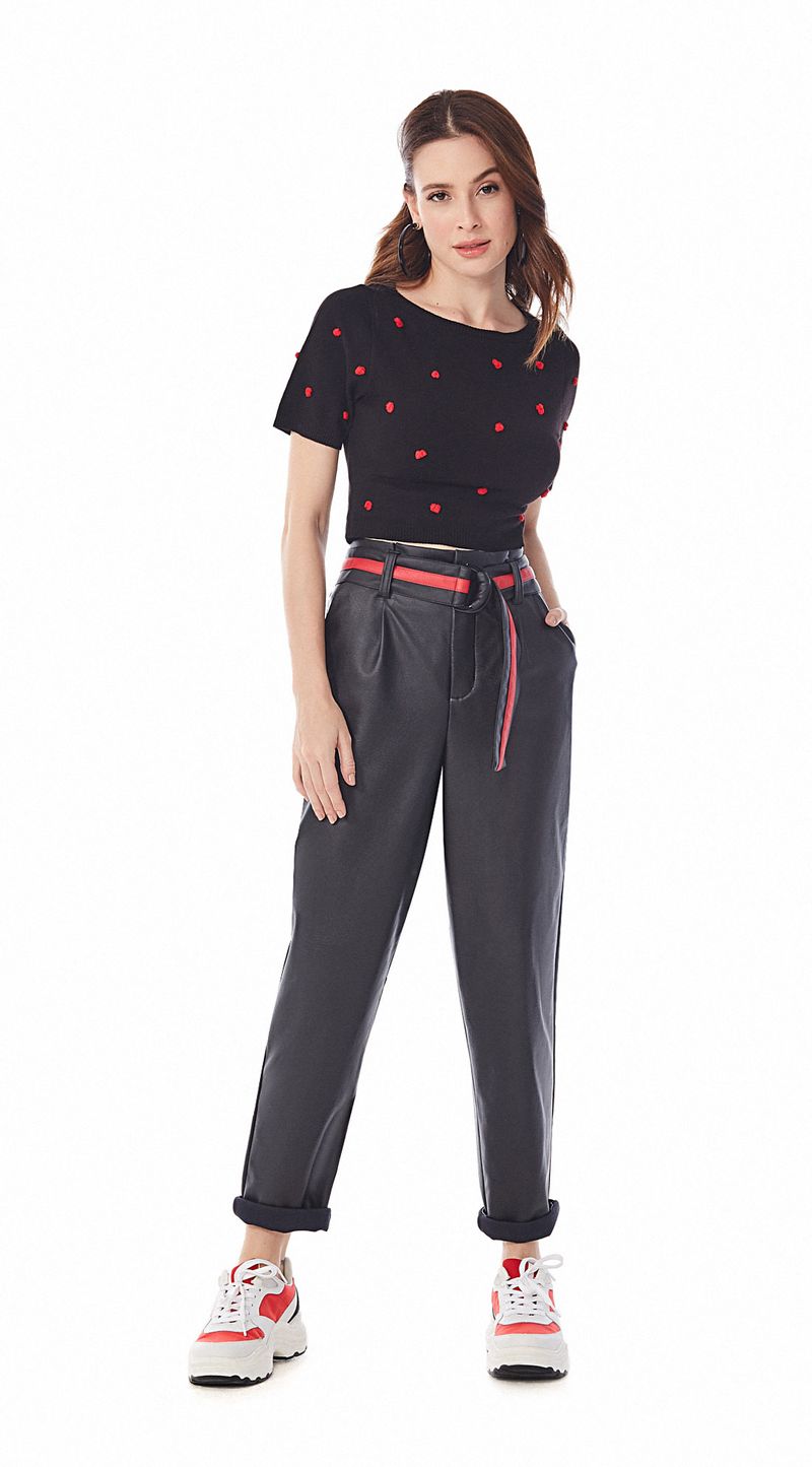 Calça Zinco Cenoura Clochard Cós Alto Com Cinto Preto
