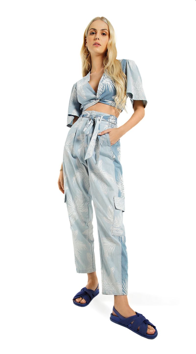Calça Zinco Cenoura Cós Alto Bicolor Jeans