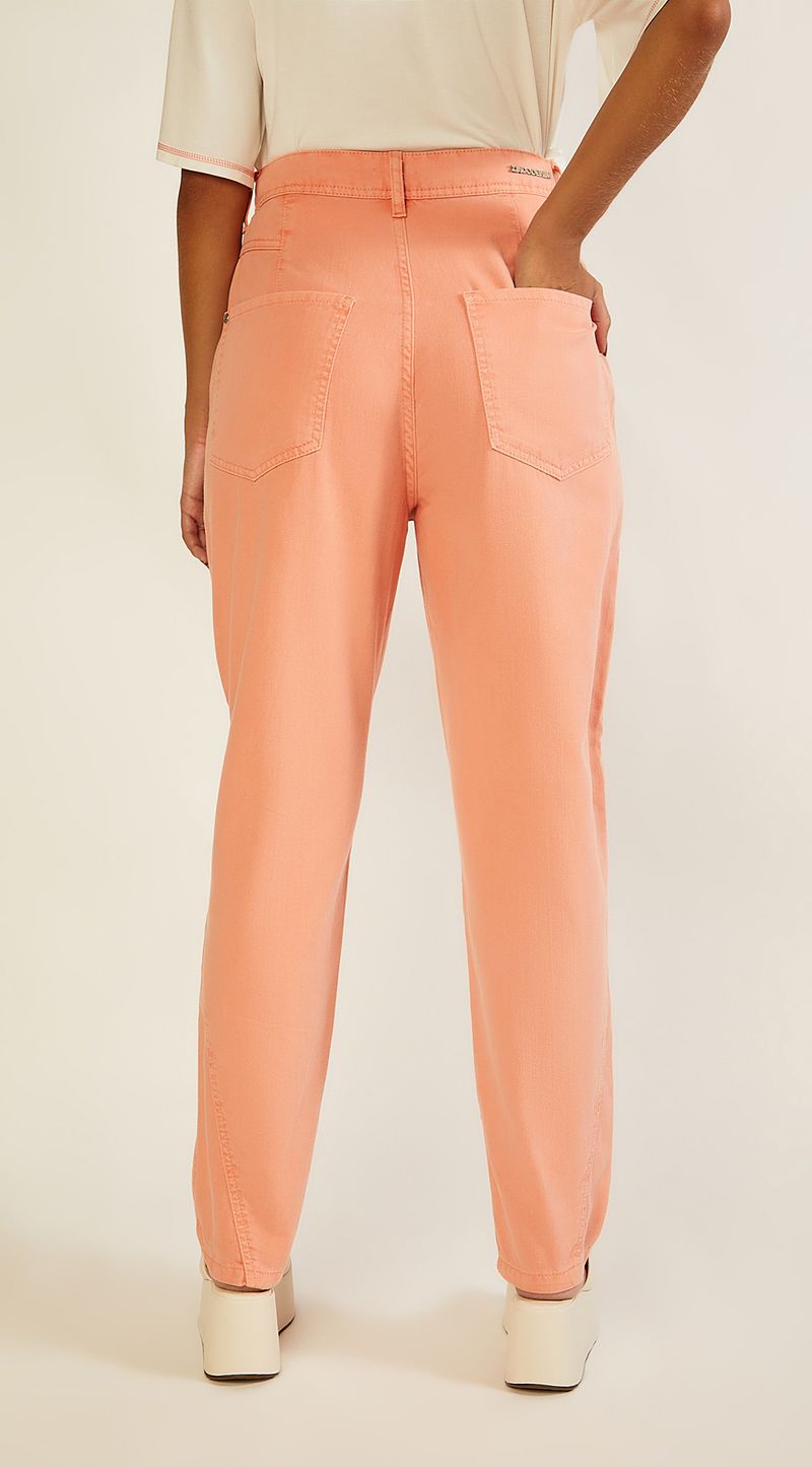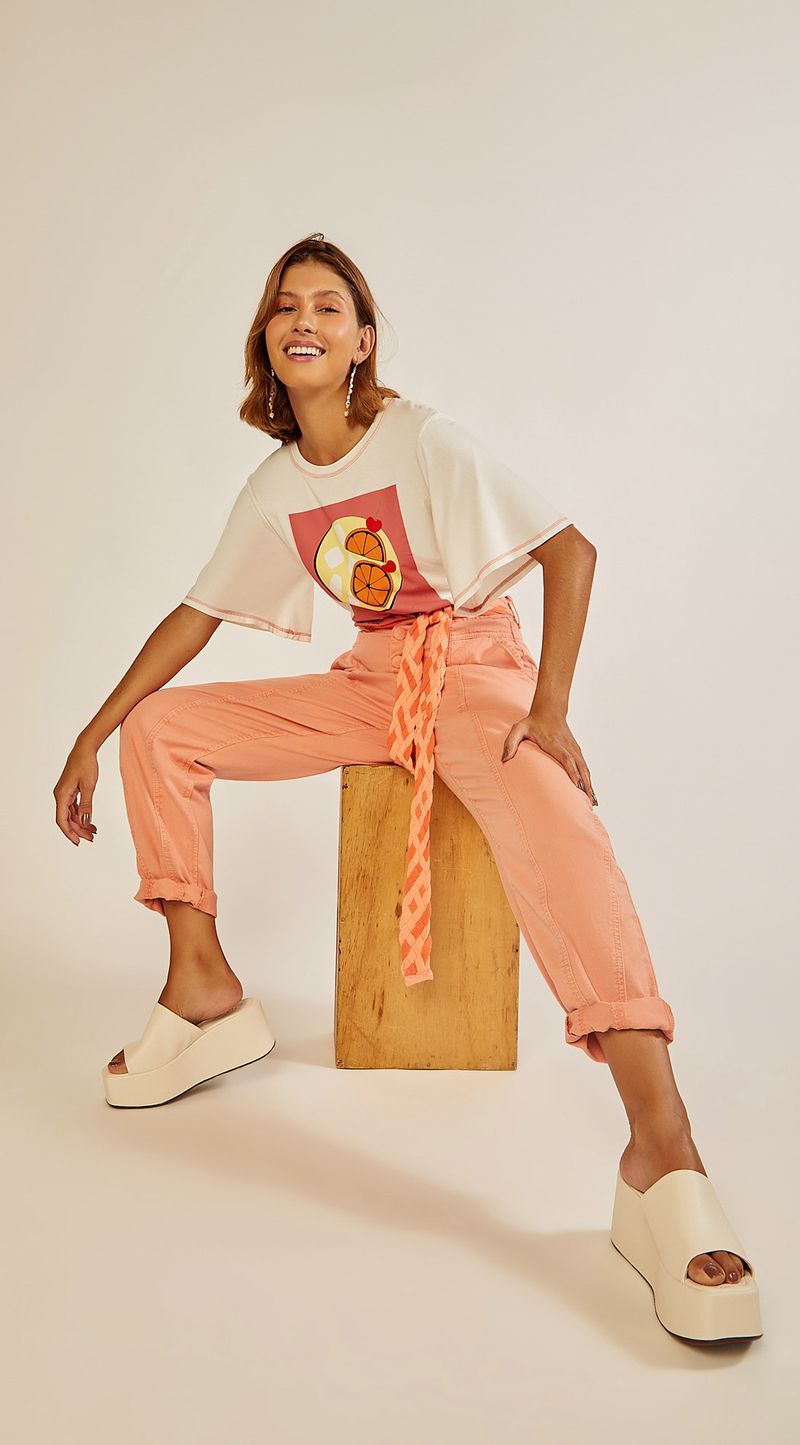 Calça sarja cós alto com recorte. Apesar de clássica, a calça Cenoura é uma ótima opção para usar no trabalho com terninho e com um sapato um pouco mais arrumado, por exemplo. Por outro lado, se você usar com top e uma sandália rasteirinha cria uma opção bem descolada e linda.