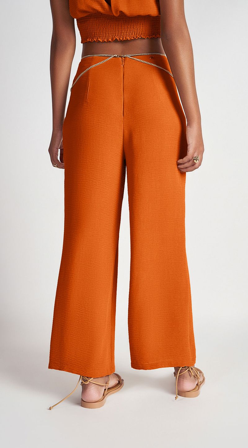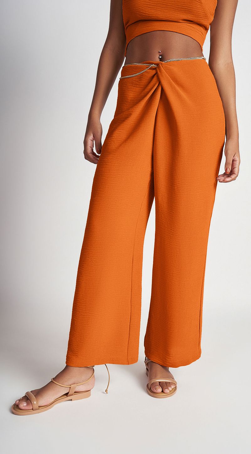 Calca Zinco Flare Cós Alto Com Corrente Laranja