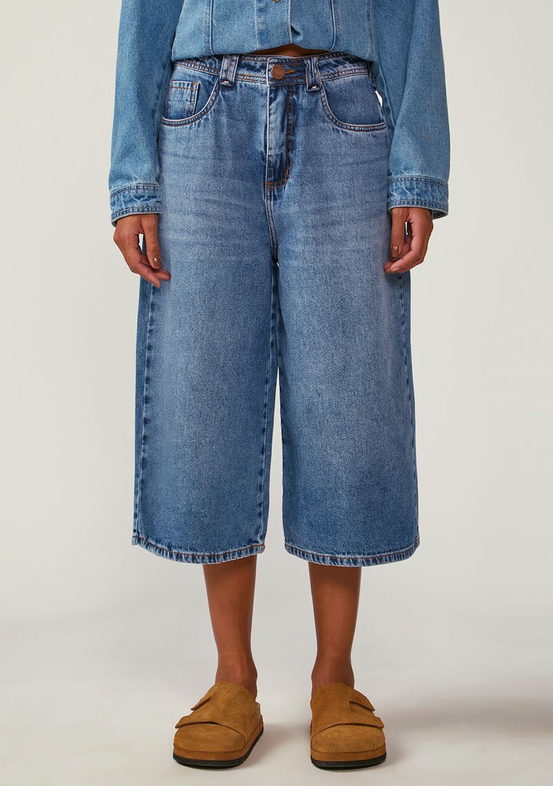 Calça Zinco Pantacourt Alta Azul: descubra o poder de uma peça versátil que une estilo e conforto em sua rotina. Com um corte pantacourt que adiciona um toque moderno e sofisticado ao seu look, esta calça jeans é perfeita para transitar entre o urbano e o casual. Fabricada em 100% algodão, garante conforto e leveza. Combine-a com uma blusa fluida e sandálias para um visual despojado ou aposte em um blazer e salto para ocasiões mais elegantes. Sinta-se livre e autêntica com a calça que expressa sua essência e te acompanha em todos os momentos.