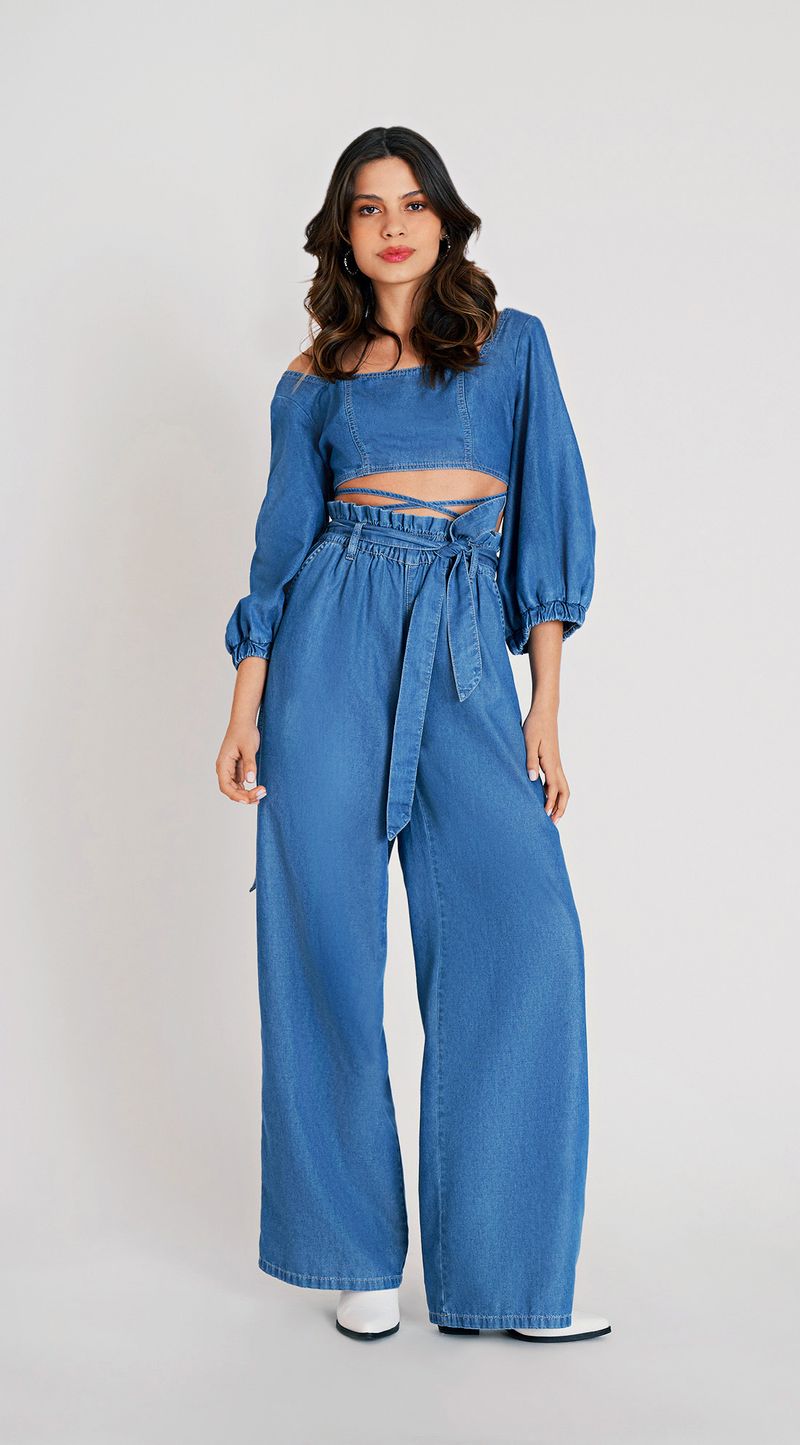 OUTLETRoupasCalcasCalca Zinco Pantalona Reta Cós Clochard Detalhe Elástico Jeans