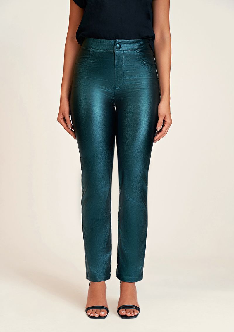 OUTLETRoupasCalcasCalca Zinco Reta Cós Alto Bolso Falso Verde