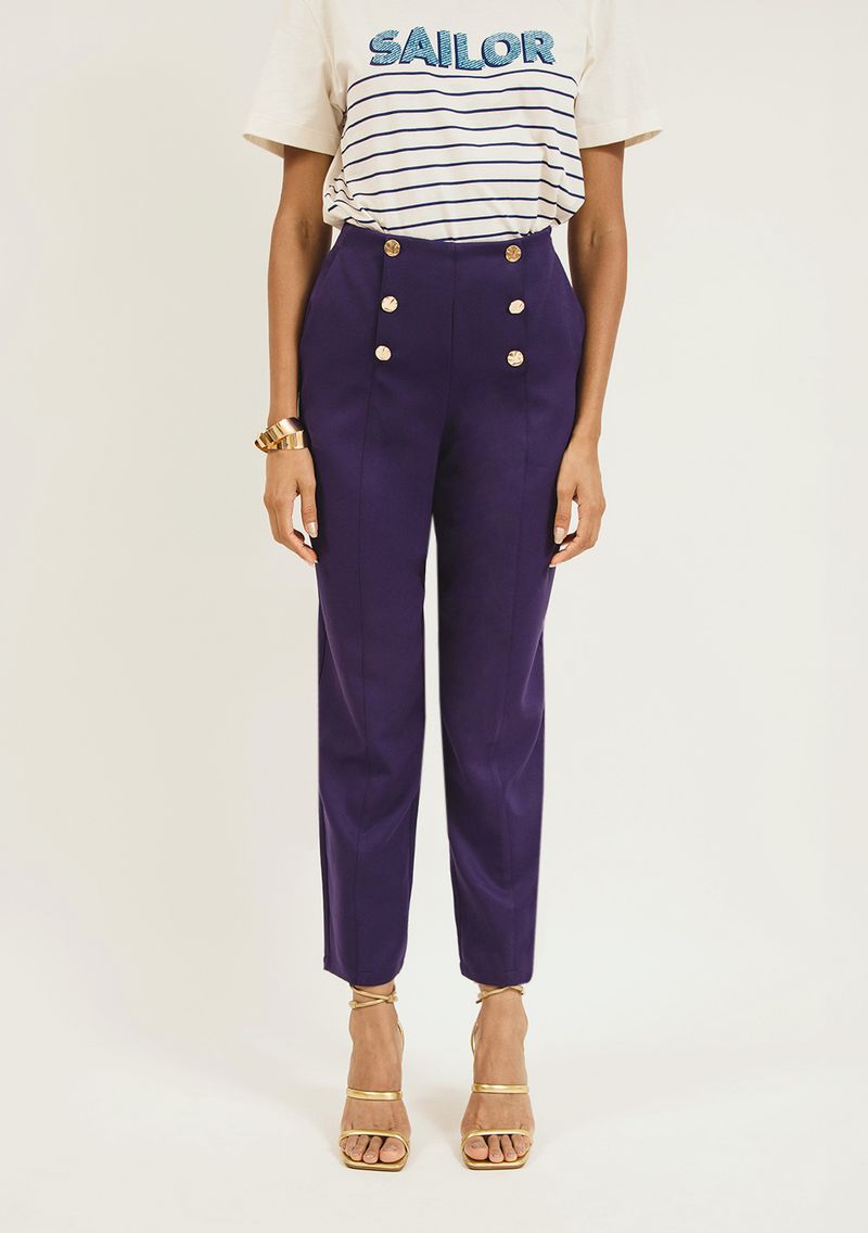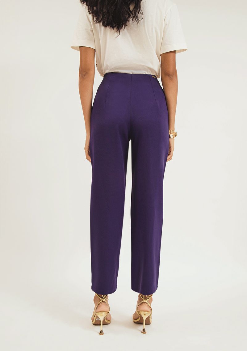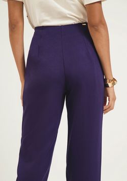 Calça Zinco Reta Cós Alto Com Recorte Azul Marinho