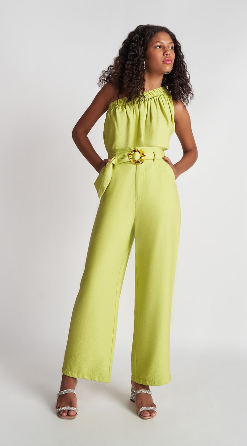 Calça Zinco Reta Cós Clochard Com Fivela Verde Claro