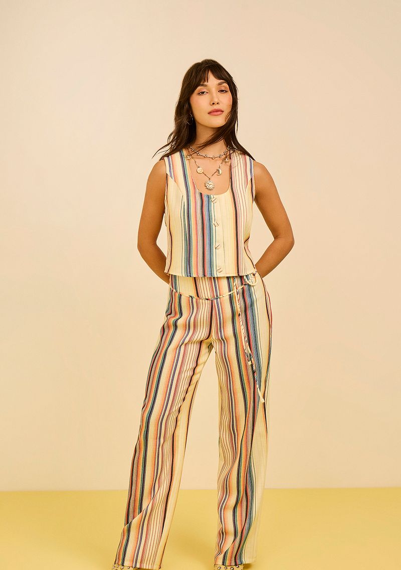 Combine com uma blusa cropped branca e sandálias de tiras para um visual descontraído, ou aposte em uma camisa de botão e tênis para um look casual chic. A calça amarela adiciona um toque vibrante ao seu guarda-roupa, refletindo a energia da coleção El Mar, que celebra a beleza das costas latinas. Invista na calça Zinco e sinta-se confiante e cheia de estilo em qualquer ocasião!