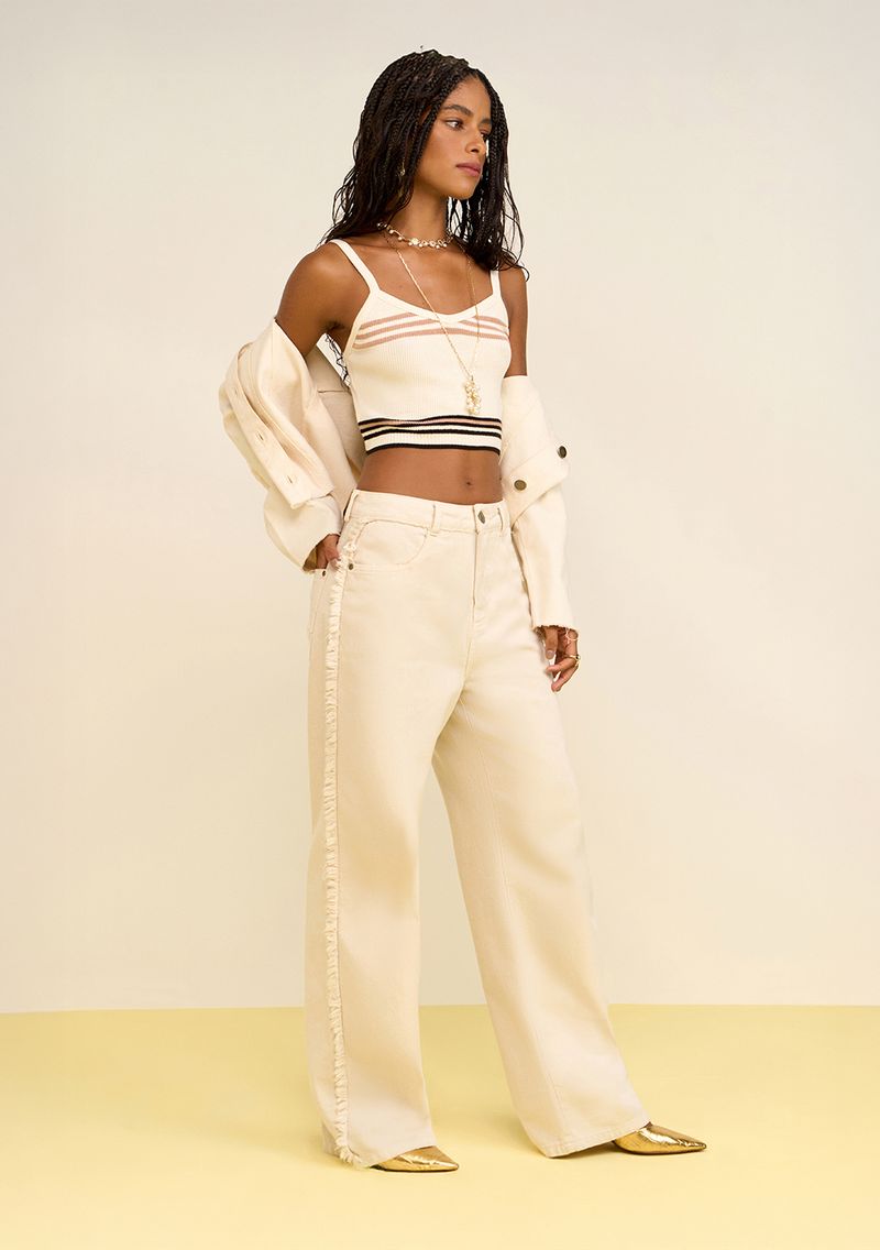 Descubra a Calça Zinco Wide Alta Off White, a peça que transforma qualquer look com sofisticação e atitude. Com corte amplo e cintura alta, ela combina o conforto da sarja ao toque elegante do off white. Ideal para momentos que pedem estilo sem esforço, do dia a dia ao jantar especial. Combine com uma blusa vibrante e acessórios minimalistas para um visual cheio de personalidade. Feita em algodão puro, é a escolha perfeita para mulheres que buscam autenticidade e conforto. Experimente a moda que celebra sua essência!