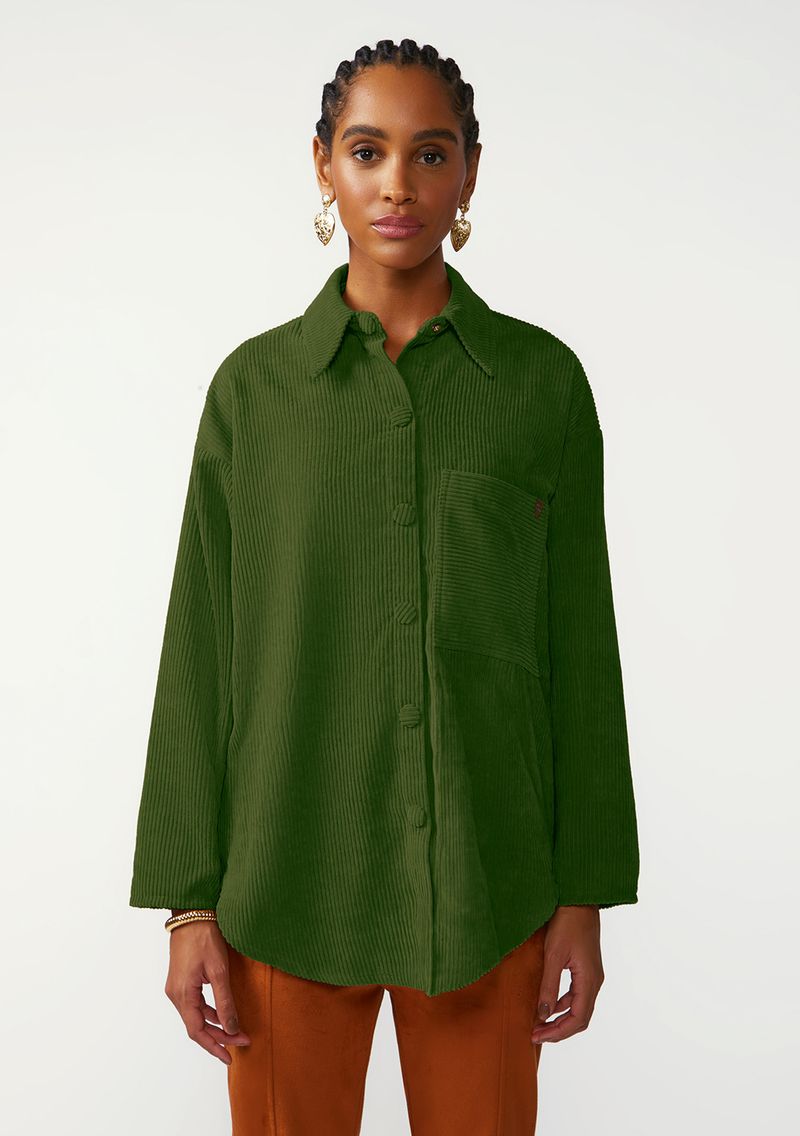 Camisa Zinco Solta Gola Clássica Manga Longa Padrão Verde