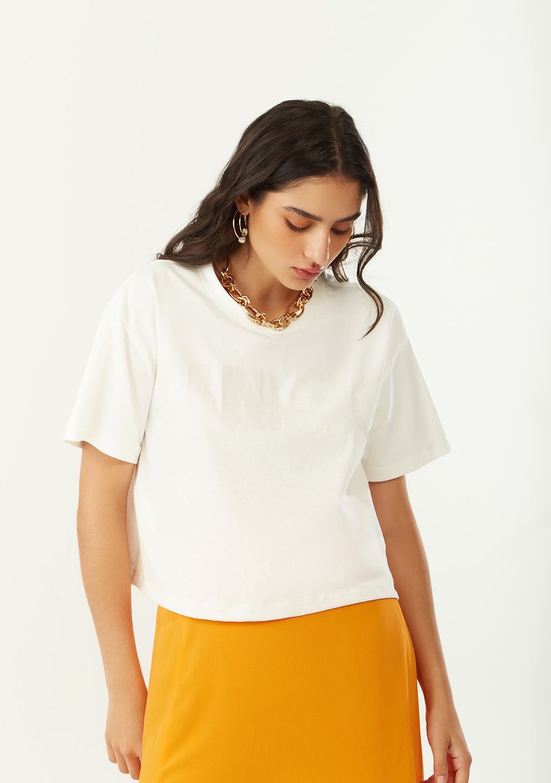 Descubra a essência do estilo com a Camiseta Zinco Solta Cropped Off White. Confeccionada 100% em algodão, essa peça oferece conforto sem igual. O design cropped, com decote careca e mangas curtas, a torna perfeita para combinar com jeans de cintura alta ou saias fluidas, criando looks casuais e cheios de atitude. Ideal para transitar do dia a dia para ocasiões especiais, essa camiseta captura a essência da coleção 'Solstício de Inverno', trazendo uma vibração jovem e sofisticada. Aposte na versatilidade e expresse sua personalidade com a moda Zinco.
