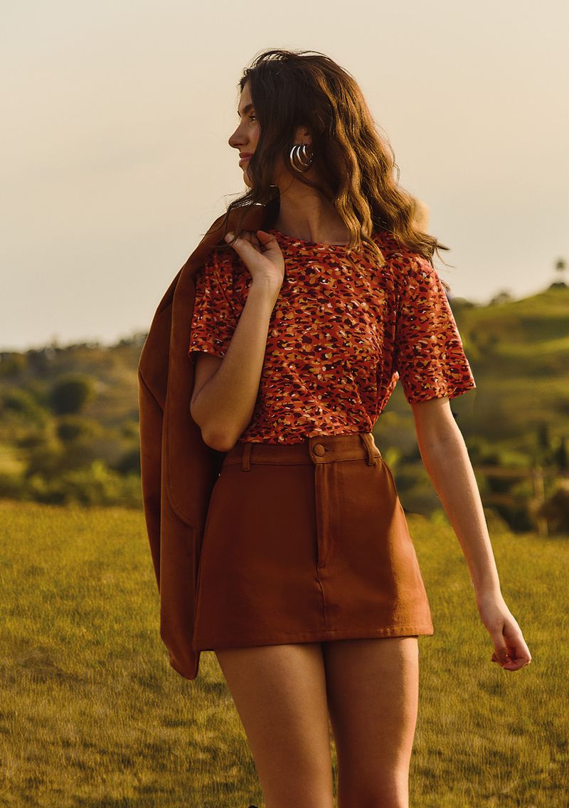 Descubra a Camiseta Zinco Solta Decote Careca Manga Curta Padrão Laranja, a peça que traduz liberdade e autenticidade. Com um toque vibrante, ela se destaca em qualquer ocasião, seja no dia a dia ou em eventos casuais. Confeccionada com 95% poliéster e 5% elastano, proporciona conforto e caimento perfeito. Combine com jeans e botas para um look boho ou com saias fluidas para um visual despojado. Vista-se de atitude e estilo com Zinco!